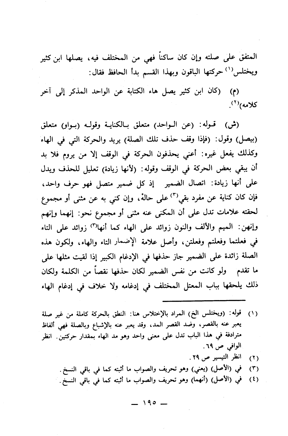 (م) (كان ابن كثير يصل هاء الكتابة عن الواحد المذكر إلى آخر كلامه) (¬2).