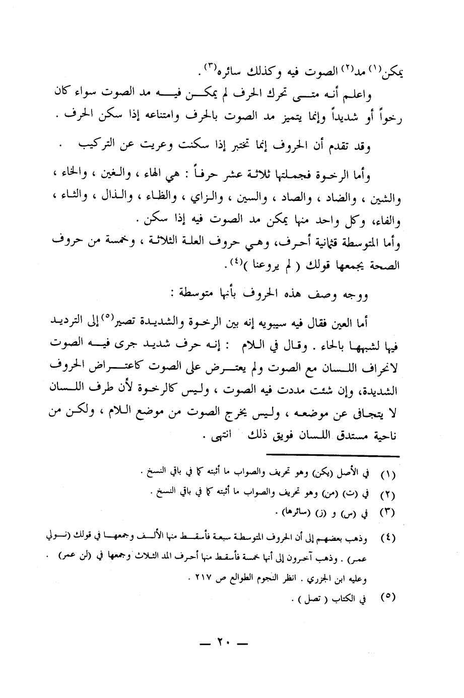 (¬4) وذهب بعضهم إلى أن الحروف المتوسطة سبعة فأسقط منها الألف وجمعها في قولك (نولي عمر). وذهب آخرون إلى أنها خمسة فأسقط منها أحرف المد الثلاث وجمعها في (لن عمر).