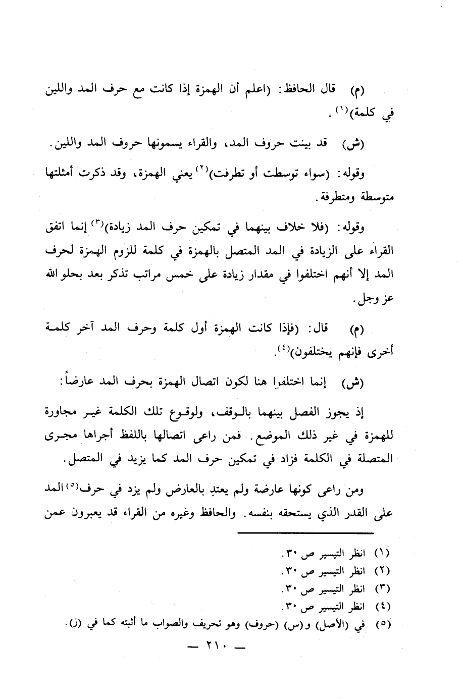 (م) قال الحافظ: (اعلم أن الهمزة إذا كانت مع حرف المد واللين في كلمة) (¬1).