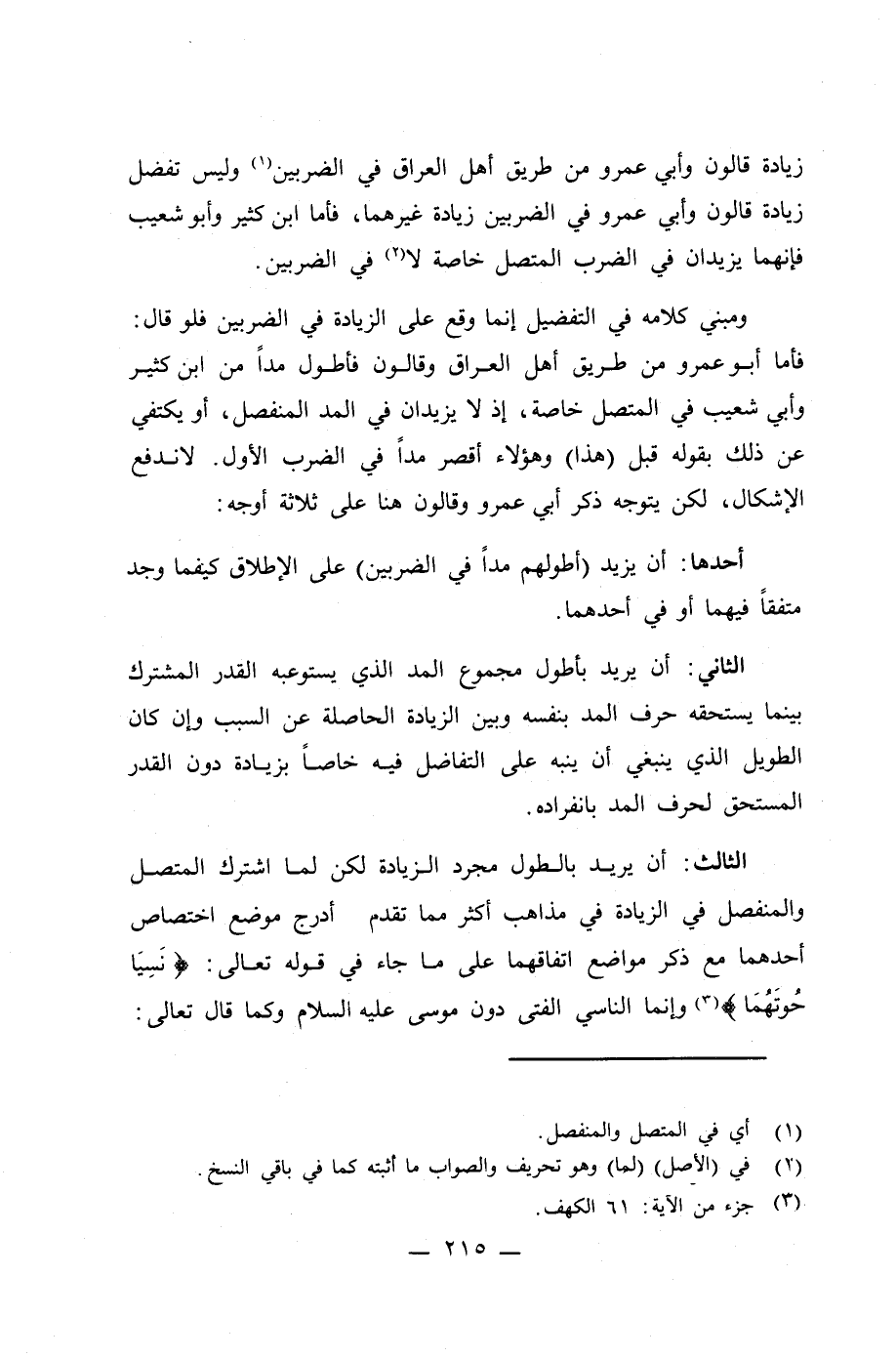 الثالث: أن يريد بالطول مجرد الزيادة لكن لما اشترك المتصل والمنفصل في الزيادة في مذاهب أكثر مما تقدم أدرج موضع اختصاص أحدهما مع ذكر مواضع اتفاقهما على ما جاء في قوله تعالى: {نَسِيَا حُوتَهُمَا} (¬3) وإنما الناسي الفتى دون موسى - عليه السلام - وكما قال تعالى: