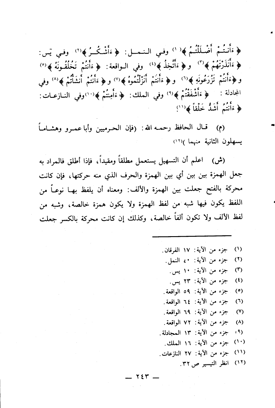 (م) قال الحافظ - رَحِمَهُ اللهُ -: (فإن الحرميين وأبا عمرو وهشاماً يسهلون الثانية منهما) (¬12)