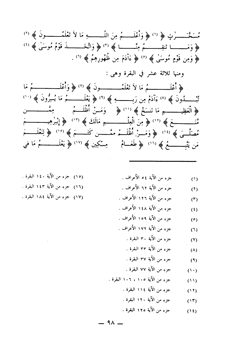 {أَعْلَمُ مَا لَا تَعْلَمُونَ} (¬7) {وَأَعْلَمُ مَا تُبْدُونَ} (¬8) {آدَمُ مِنْ رَبِهِ} (¬9) {يَعْلَمُ مَا يُسِرُّونَ} (¬10) {الْعَظِيمِ مَا نَنْسَخْ} (¬11) {وَمَنْ أَظْلَمُ مِمَّن مَنَعَ} (¬12) {مِنَ الْعِلْمِ مَالَكَ} (¬13) {إِبْرَاهِيمَ مُصَلَّى} (¬14) {وَمَنْ أَظْلَمُ مِمَّن كَتَمَ} (¬15) {لِنَعْلَمَ مَن يَتَّبِعُ} (¬16) {طَعَامُ مِسْكِينُ} (¬17) {يَعْلَمُ مَا في
