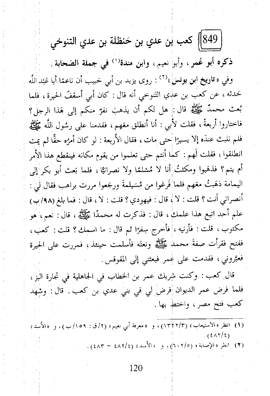 ٨٤٩ - كعب بن عدي بن حَنظلة بن عدي التنوخي