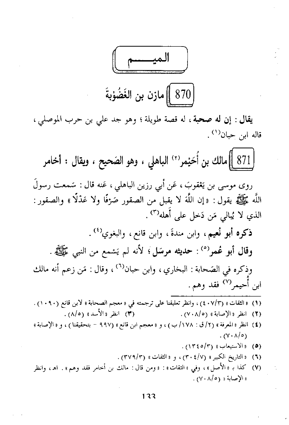 ٨٧١ - مالك بن أُحَيمر (٢) الباهليّ, وهو الصحيح, ويقال: أخامر