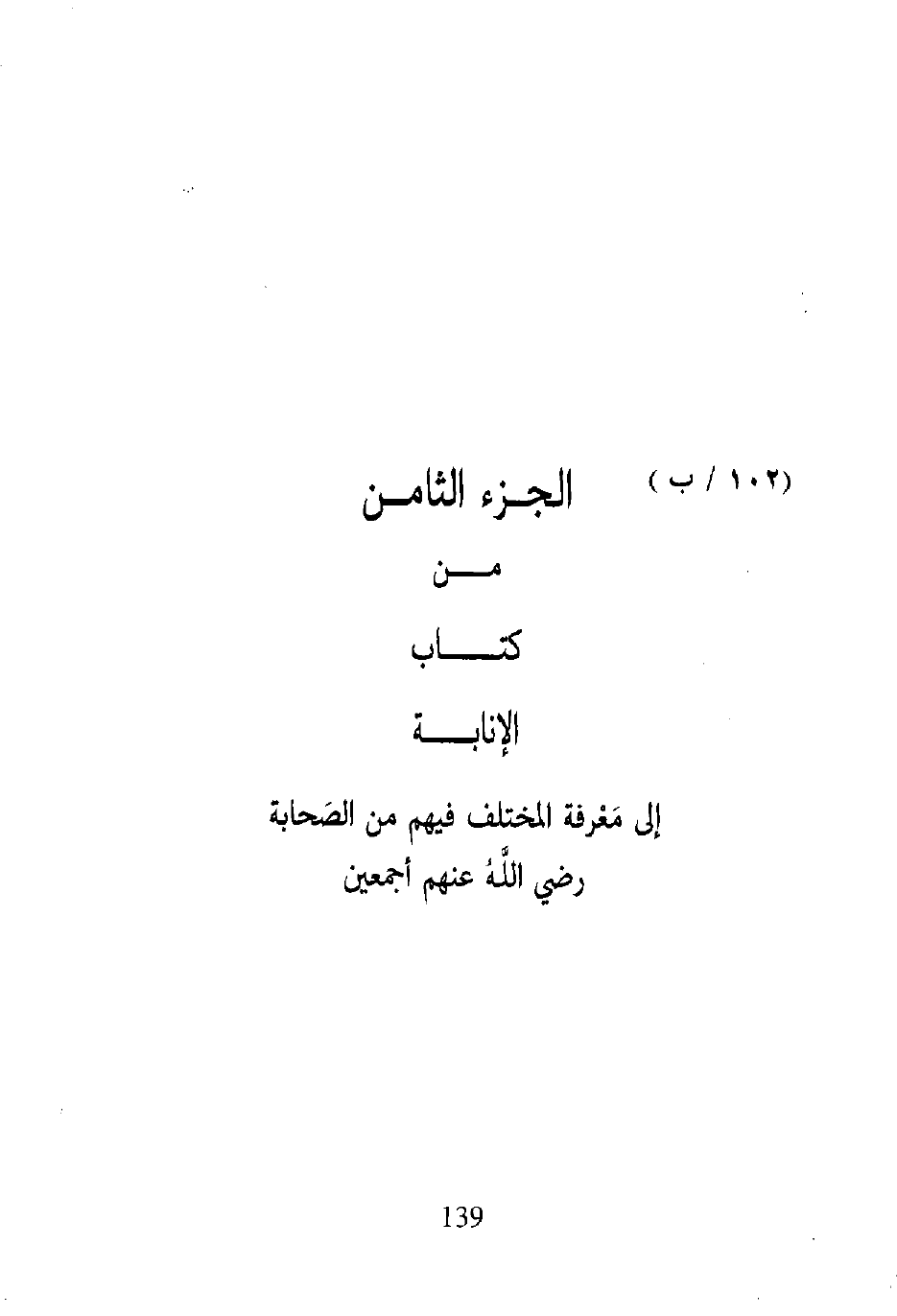 الجزء الثامن من كتاب الإنابة إلى مَعْرفة المختلف فيهم من الصَّحابة رضي الله عنهم أجمعين