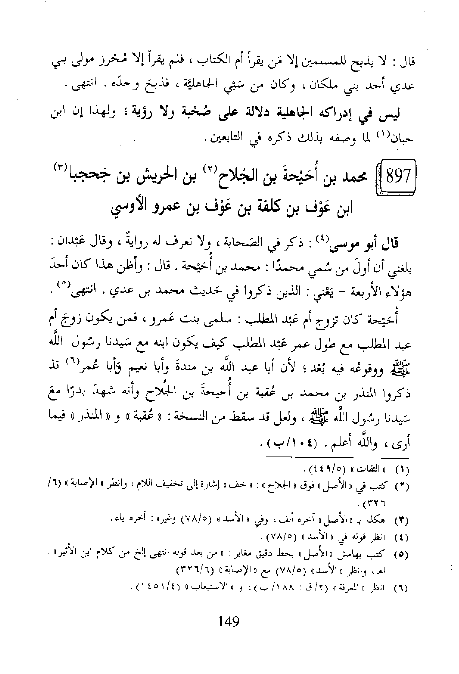 ٨٩٧ - محمَّد بن أُحَيْحةَ بن الجُلاح (٢) بن الحريش بن جَحجبا (٣) بن عَوْف بن كلفة بن عَوْف بن عمرو الأوسي