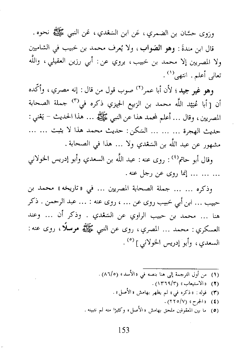 وهو غير جيد؛ لأن أبا عمر (٢) صوب قول من قال: إنه مصري، وأكده أن [أبا عُبَيد اللَّه محمد بن الربيع الجِيزي ذكره في (٣) جملة الصحابة المصريين، وقال ... أعلم لمحمد هذا عن النبي - صلى الله عليه وسلم - ... هذا الحديث -يَعْني: حديث الهجرة. . . السَكن: حديث محمد هذا لا يثبت. .. مشهور عن عبد الله بن السَعْدي ولا ... هذا في الصحابة.