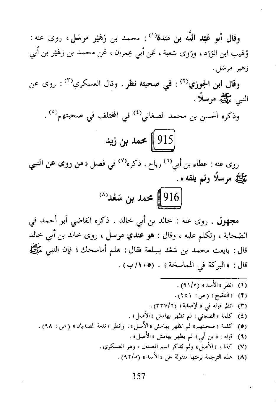 وقال أبو عبد الله بن مندة (١): محمد بن زهير مرسَل، روى عنه: وُهَيب بن الوَرْد، ورَوى شعبة، عَن أبي عِمران، عَن محمد بن زهَير بن أبي زهير مرسَل.