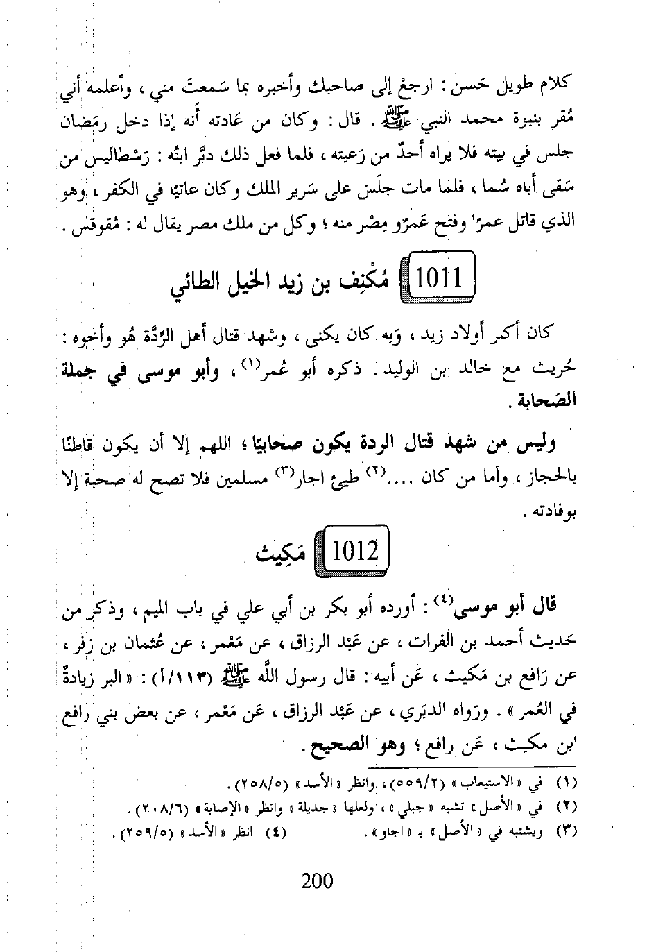 وليس من شهد قتال الردة يكون صحابيًّا، اللهم إلا أن يكون قاطنًا بالحجاز، وأما من كان ... (٢) طيئ اجار (٣) مسلمين فلا تصح له صحبة إلا بوفادته.