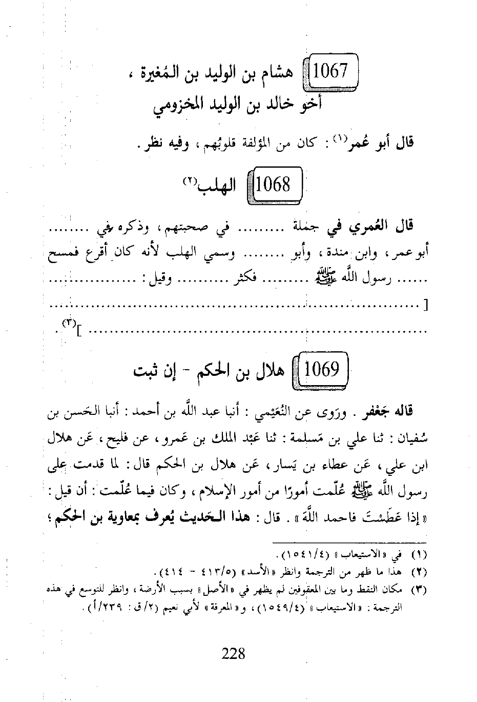 قال العُمري في جملة. . . . في صحبتهم، وذكره في. . . . أبو عمر، وابن مندة، وأبو. . . . وسمي الهلب لأنه كان أقرع فمسح. . . . رسول الله - صلى الله عليه وسلم -. . . . فكثر. . . . وقيل: . . . . [. . . .] (٣).