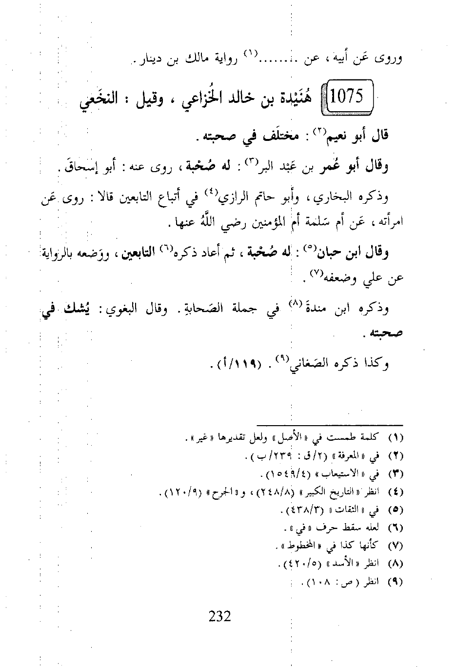 ١٠٧٥ - هُنَيدة بن خالد الخُزاعي، وقيل: النخَعي