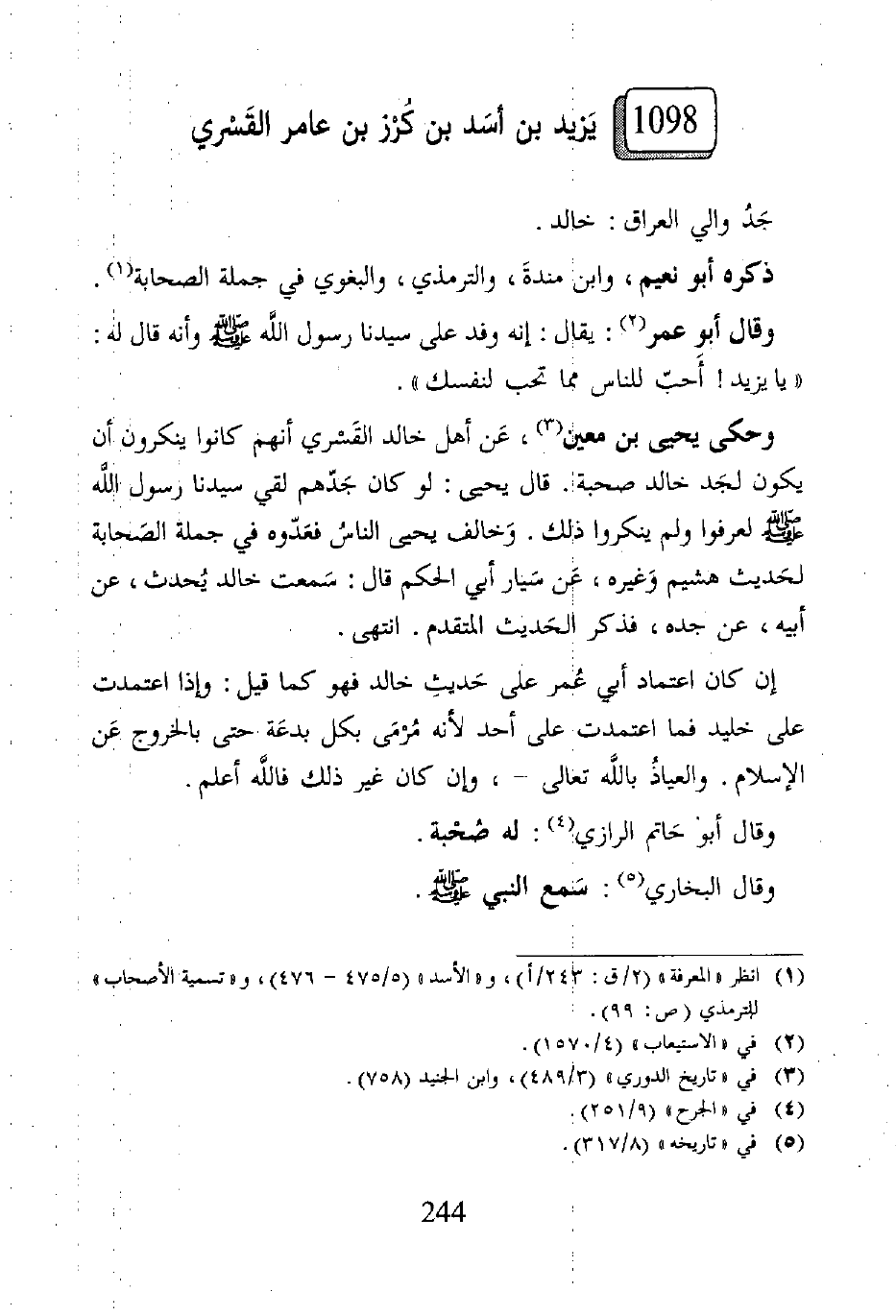 ١٠٩٨ - يَزيد بن أسَد بن كُرْز بن عامر القَسْري