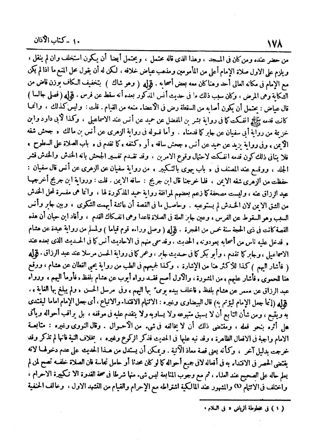 مَنْ حَضَرَ عِنْدَهُ وَمَنْ كَانَ فِي الْمَسْجِدِ وَهَذَا الَّذِي قَالَهُ مُحْتَمَلٌ وَيُحْتَمَلُ أَيْضًا أَنْ يَكُونَ اسْتَخْلَفَ وَإِنْ لَمْ يُنْقَلْ وَيَلْزَمُ عَلَى الْأَوَّلِ صَلَاةُ الْإِمَامِ أَعْلَى مِنَ الْمَأْمُومِينَ وَمَذْهَبُ عِيَاضٍ خِلَافُهُ لَكِنْ لَهُ أَنْ يَقُولَ مَحَلُّ الْمَنْعِ مَا إِذَا لَمْ يَكُنْ مَعَ الْإِمَامِ فِي مَكَانِهِ الْعَالِي أَحَدٌ وَهُنَا كَانَ مَعَهُ بَعْضُ أَصْحَابِهِ