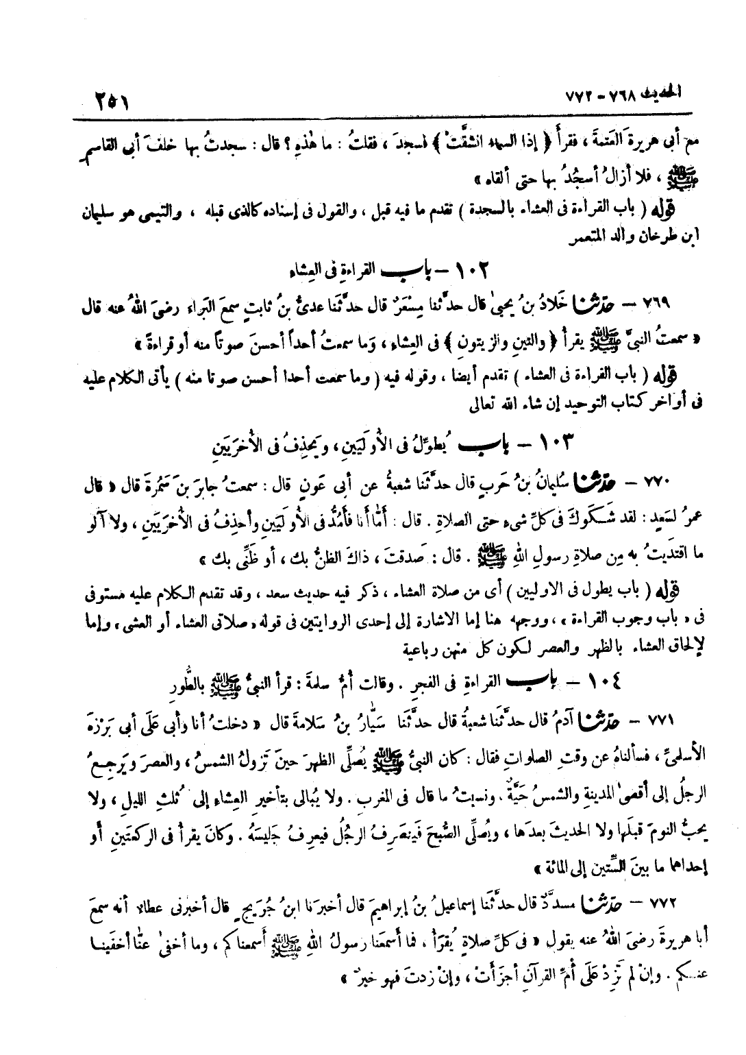 [769] فِيهِ وَمَا سَمِعْتُ أَحَدًا أَحْسَنَ صَوْتًا مِنْهُ يَأْتِي الْكَلَامُ عَلَيْهِ فِي أَوَاخِرِ كِتَابِ التَّوْحِيدِ إِنْ شَاءَ اللَّهُ تَعَالَى