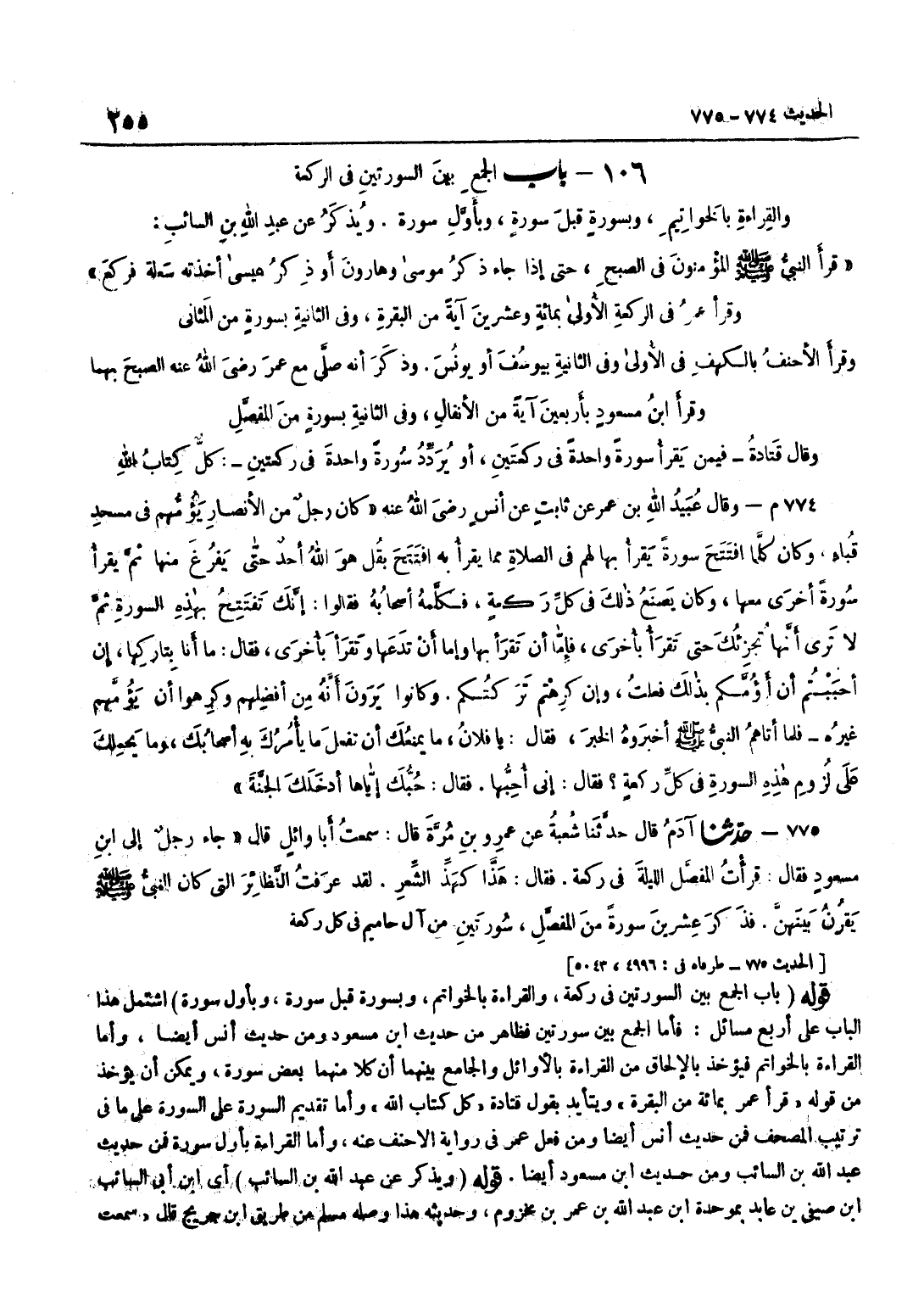 (قَوْلُهُ بَابُ الْجَمْعِ بَيْنَ السُّورَتَيْنِ فِي رَكْعَةٍ وَالْقِرَاءَةِ بِالْخَوَاتِمِ وَبِسُورَةٍ قَبْلَ سُورَةٍ وَبِأَوَّلِ سُورَةٍ)