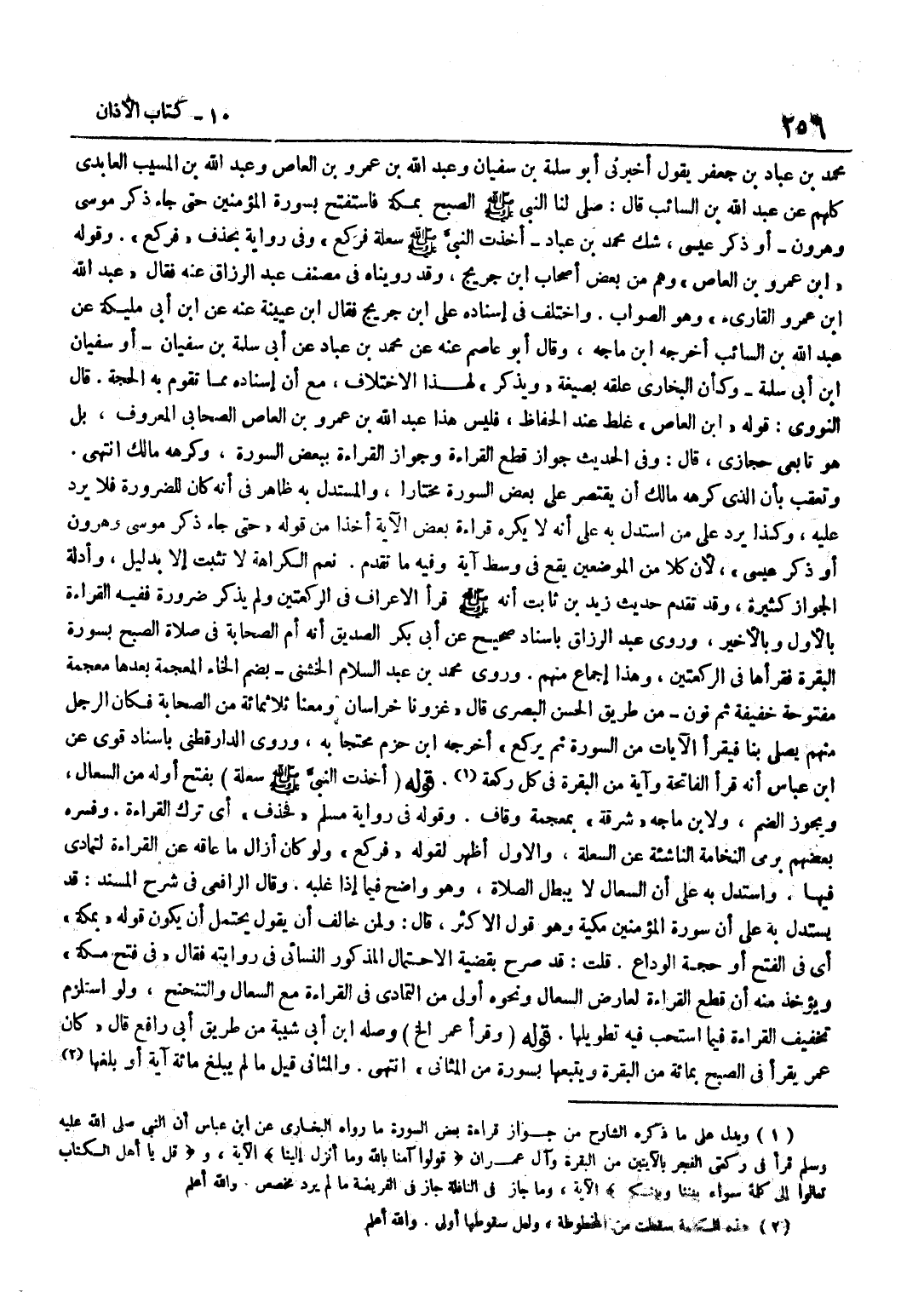 مُحَمَّدَ بْنَ عَبَّادِ بْنِ جَعْفَرٍ يَقُولُ أَخْبَرَنِي أَبُو سَلَمَةَ بْنُ سُفْيَانَ وَعَبْدُ اللَّهِ بْنُ عَمْرِو بْنِ الْعَاصِ وَعَبْدُ اللَّهِ بْنُ الْمُسَيَّبِ الْعَابِدِيُّ كُلُّهُمْ عَنْ عَبْدِ اللَّهِ بْنِ السَّائِبِ قَالَ صَلَّى لَنَا النَّبِيُّ صَلَّى اللَّهُ عَلَيْهِ وَسَلَّمَ الصُّبْحَ بِمَكَّةَ فَاسْتَفْتَحَ بِسُورَةِ الْمُؤْمِنِينَ حَتَّى جَاءَ ذِكْرُ مُوسَى وَهَارُونَ أَوْ ذِكْرُ عِيسَى شَكَّ مُحَمَّدُ بْنُ عَبَّادٍ أَخَذَتِ النَّبِيَّ صَلَّى اللَّهُ عَلَيْهِ وَسَلَّمَ سَعْلَةٌ فَرَكَعَ وَفِي رِوَايَةٍ بِحَذْف فَرَكَعَ وَقَوله بن عَمْرِو بْنِ الْعَاصِ وَهَمٌ مِنْ بَعْضِ أَصْحَابِ بن جُرَيْجٍ وَقَدْ رُوِّينَاهُ فِي مُصَنَّفِ عَبْدِ الرَّزَّاقِ عَنْهُ فَقَالَ عَبْدُ اللَّهِ بْنُ عَمْرٍو الْقَارِئُ وَهُوَ الصَّوَاب وَاخْتلف فِي إِسْنَاده على بن جريج فَقَالَ بن عُيَيْنَة عَنهُ عَن بن أَبِي مُلَيْكَةَ عَنْ عَبْدِ اللَّهِ بْنِ السَّائِبِ أخرجه بن مَاجَهْ وَقَالَ أَبُو عَاصِمٍ عَنْهُ عَنْ مُحَمَّدِ بْنِ عَبَّادٍ عَنْ أَبِي سَلَمَةَ بْنِ سُفْيَانَ أَوْ سُفْيَانَ بْنِ أَبِي سَلَمَةَ وَكَأَنَّ الْبُخَارِيَّ عَلَّقَهُ بِصِيغَةِ وَيُذْكَرُ لِهَذَا الِاخْتِلَافِ مَعَ أَنَّ إِسْنَادَهُ مِمَّا تَقُومُ بِهِ الْحُجَّةُ قَالَ النَّوَوِيُّ قَوْله بن الْعَاصِ غَلَطٌ عِنْدَ الْحُفَّاظِ فَلَيْسَ هَذَا عَبْدَ اللَّهِ بْنَ عَمْرِو بْنِ الْعَاصِ الصَّحَابِيَّ الْمَعْرُوفَ بَلْ هُوَ تَابِعِيٌّ حِجَازِيٌّ قَالَ وَفِي الْحَدِيثِ جَوَازُ قَطْعِ الْقِرَاءَةِ وَجَوَازُ الْقِرَاءَةِ بِبَعْضِ السُّورَةِ وَكَرِهَهُ مَالِكٌ انْتَهَى وَتُعُقِّبَ بِأَنَّ الَّذِي كَرِهَهُ مَالِكٌ أَنْ يَقْتَصِرَ عَلَى بَعْضِ السُّورَةِ مُخْتَارًا وَالْمُسْتَدَلُّ بِهِ ظَاهِرٌ فِي أَنَّهُ كَانَ لِلضَّرُورَةِ فَلَا يُرَدُّ عَلَيْهِ وَكَذَا يُرَدُّ عَلَى مَنِ اسْتَدَلَّ بِهِ عَلَى أَنَّهُ لَا يُكْرَهُ قِرَاءَةُ بَعْضِ الْآيَةِ أَخْذًا مِنْ قَوْلِهِ حَتَّى جَاءَ ذِكْرُ مُوسَى وَهَارُونَ أَوْ ذِكْرُ عِيسَى لِأَنَّ كُلًّا مِنَ الْمَوْضِعَيْنِ يَقَعُ فِي وَسَطِ آيَةٍ وَفِيهِ مَا تَقَدَّمَ نَعَمْ الْكَرَاهَةُ لَا تَثْبُتُ إِلَّا بِدَلِيلٍ وَأَدِلَّةُ الْجَوَازِ كَثِيرَةٌ وَقَدْ تَقَدَّمَ حَدِيثُ زَيْدِ بْنِ ثَابِتٍ أَنَّهُ صَلَّى اللَّهُ عَلَيْهِ وَسَلَّمَ قَرَأَ الْأَعْرَافَ فِي الرَّكْعَتَيْنِ وَلَمْ يَذْكُرْ ضَرُورَةً فَفِيهِ الْقِرَاءَةُ بِالْأَوَّلِ وَبِالْأَخِيرِ وَرَوَى عَبْدُ الرَّزَّاقِ بِإِسْنَادٍ صَحِيحٍ عَنْ أَبِي بَكْرٍ الصِّدِّيقِ أَنَّهُ أَمَّ الصَّحَابَةَ فِي صَلَاةِ الصُّبْحِ بِسُورَةِ الْبَقَرَةِ فَقَرَأَهَا فِي الرَّكْعَتَيْنِ وَهَذَا إِجْمَاعٌ مِنْهُمْ وَرَوَى مُحَمَّدُ بْنُ عَبْدِ السَّلَامِ الْخُشَنِيُّ بِضَمِّ الْخَاءِ الْمُعْجَمَةِ بَعْدَهَا مُعْجَمَةٌ مَفْتُوحَةٌ خَفِيفَةٌ ثُمَّ نُونٌ مِنْ طَرِيقِ الْحَسَنِ الْبَصْرِيِّ قَالَ غَزَوْنَا خُرَاسَانَ وَمَعَنَا ثَلَاثُمِائَةٍ مِنَ الصَّحَابَةِ فَكَانَ الرَّجُلُ مِنْهُمْ يُصَلِّي بِنَا فَيَقْرَأُ الْآيَاتِ مِنَ السُّورَة ثمَّ يرْكَع أخرجه بن حَزْمٍ مُحْتَجًّا بِهِ وَرَوَى الدَّارَقُطْنِيُّ بِإِسْنَادٍ قَوِيٍّ عَن بن عَبَّاسٍ أَنَّهُ قَرَأَ الْفَاتِحَةَ وَآيَةً مِنَ الْبَقَرَةِ فِي كل رَكْعَة قَوْلُهُ أَخَذَتِ النَّبِيَّ صَلَّى اللَّهُ عَلَيْهِ وَسَلَّمَ سَعْلَةٌ بِفَتْحِ أَوَّلِهِ مِنَ السُّعَالِ وَيَجُوزُ الضَّمُّ وَلِابْنِ مَاجَهْ شَرْقَةٌ بِمُعْجَمَةٍ وَقَافٍ وَقَوْلُهُ فِي رِوَايَةِ مُسْلِمٍ فَحَذَفَ أَيْ تَرَكَ الْقِرَاءَةَ وَفَسَّرَهُ بَعْضُهُمْ بِرَمْيِ النُّخَامَةِ النَّاشِئَةِ عَنِ السَّعْلَةِ وَالْأَ