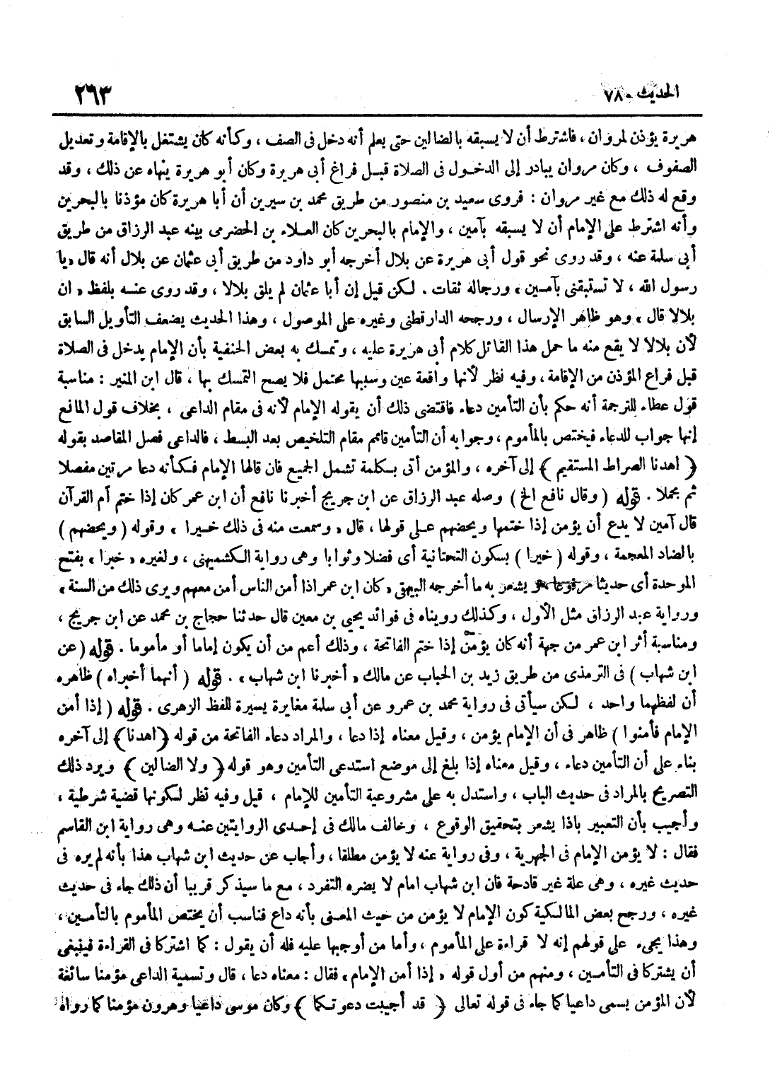هُرَيْرَةَ يُؤَذِّنُ لِمَرْوَانَ فَاشْتَرَطَ أَنْ لَا يَسْبِقَهُ بِالضَّالِّينَ حَتَّى يَعْلَمَ أَنَّهُ دَخَلَ فِي الصَّفِّ وَكَأَنَّهُ كَانَ يَشْتَغِلُ بِالْإِقَامَةِ وَتَعْدِيلِ الصُّفُوفِ وَكَانَ مَرْوَانُ يُبَادِرُ إِلَى الدُّخُولِ فِي الصَّلَاةِ قَبْلَ فَرَاغِ أَبِي هُرَيْرَةَ وَكَانَ أَبُو هُرَيْرَةَ يَنْهَاهُ عَنْ ذَلِكَ وَقَدْ وَقَعَ لَهُ ذَلِكَ مَعَ غَيْرِ مَرْوَانَ فَرَوَى سَعِيدُ بْنُ مَنْصُورٍ مِنْ طَرِيقِ مُحَمَّدِ بْنِ سِيرِين أَنَّ أَبَا هُرَيْرَةَ كَانَ مُؤَذِّنًا بِالْبَحْرَيْنِ وَأَنَّهُ اشْتَرَطَ عَلَى الْإِمَامِ أَنْ لَا يَسْبِقَهُ بِآمِينَ وَالْإِمَامُ بِالْبَحْرَيْنِ كَانَ الْعَلَاءَ بْنَ الْحَضْرَمِيِّ بَيَّنَهُ عَبْدُ الرَّزَّاقِ مِنْ طَرِيقِ أَبِي سَلَمَةَ عَنْهُ وَقَدْ رُوِيَ نَحْوُ قَوْلِ أَبِي هُرَيْرَةَ عَنْ بِلَالٍ أَخْرَجَهُ أَبُو دَاوُدَ مِنْ طَرِيقِ أَبِي عُثْمَانَ عَنْ بِلَالٍ أَنَّهُ قَالَ يَا رَسُولَ اللَّهِ لَا تَسْتَبِقْنِي بِآمِينَ وَرِجَالُهُ ثِقَاتٌ لَكِنْ قِيلَ إِنَّ أَبَا عُثْمَانَ لَمْ يَلْقَ بِلَالًا وَقَدْ رُوِيَ عَنْهُ بِلَفْظِ أَنَّ بِلَالًا قَالَ وَهُوَ ظَاهِرُ الْإِرْسَالِ وَرَجَّحَهُ الدَّارَقُطْنِيُّ وَغَيْرُهُ عَلَى الْمَوْصُولِ وَهَذَا الْحَدِيثُ يُضَعِّفُ التَّأْوِيلَ السَّابِقَ لِأَنَّ بِلَالًا لَا يَقَعُ مِنْهُ مَا حَمَلَ هَذَا الْقَائِلُ كَلَامَ أَبِي هُرَيْرَةَ عَلَيْهِ وَتَمَسَّكَ بِهِ بَعْضُ الْحَنَفِيَّةِ بِأَنَّ الْإِمَامَ يَدْخُلُ فِي الصَّلَاةِ قَبْلَ فَرَاغِ الْمُؤَذِّنِ مِنَ الْإِقَامَةِ وَفِيهِ نَظَرٌ لِأَنَّهَا وَاقِعَةُ عَيْنٍ وَسَبَبُهَا مُحْتَمَلٌ فَلَا يَصِحُّ التَّمَسُّك بهَا قَالَ بن الْمُنِيرِ مُنَاسَبَةُ قَوْلِ عَطَاءٍ لِلتَّرْجَمَةِ أَنَّهُ حَكَمَ بِأَنَّ التَّأْمِينَ دُعَاءٌ فَاقْتَضَى ذَلِكَ أَنْ يَقُولَهُ الْإِمَامُ لِأَنَّهُ فِي مَقَامِ الدَّاعِي بِخِلَافِ قَوْلِ الْمَانِعِ إِنَّهَا جَوَابٌ لِلدُّعَاءِ فَيَخْتَصُّ بِالْمَأْمُومِ وَجَوَابُهُ أَنَّ التَّأْمِينَ قَائِمٌ مَقَامَ التَّلْخِيصِ بَعْدَ الْبَسْطِ فَالدَّاعِي فَصَّلَ الْمَقَاصِدَ بِقَوْلِهِ اهْدِنَا الصِّرَاطَ الْمُسْتَقِيمَ إِلَى آخِرِهِ وَالْمُؤْمِنُ أَتَى بِكَلِمَةٍ تَشْمَلُ الْجَمِيعَ فَإِنْ قَالَهَا الْإِمَامُ فَكَأَنَّهُ دَعَا مَرَّتَيْنِ مُفَصِّلًا ثُمَّ مُجْمِلًا قَوْلُهُ وَقَالَ نَافِعٌ إِلَخْ وَصَلَهُ عَبْدُ الرَّزَّاقِ عَن بن جريج أخبرنَا نَافِع أَن بن عُمَرَ كَانَ إِذَا خَتَمَ أُمَّ الْقُرْآنِ قَالَ آمِينَ لَا يَدَعُ أَنْ يُؤَمِّنَ إِذَا خَتَمَهَا وَيَحُضُّهُمْ عَلَى قَوْلِهَا قَالَ وَسَمِعْتُ مِنْهُ فِي ذَلِكَ خَيْرًا وَقَوْلُهُ وَيَحُضُّهُمْ بِالضَّادِ الْمُعْجَمَةِ وَقَوْلُهُ خَيْرًا بِسُكُونِ التَّحْتَانِيَّةِ أَيْ فَضْلًا وَثَوَابًا وَهِيَ رِوَايَةُ الْكُشْمِيهَنِيِّ وَلِغَيْرِهِ خَبَرًا بِفَتْحِ الْمُوَحَّدَةِ أَيْ حَدِيثًا مَرْفُوعًا وَيُشْعِرُ بِهِ مَا أَخْرَجَهُ الْبَيْهَقِيُّ كَانَ بن عُمَرَ إِذَا أَمَّنَ النَّاسُ أَمَّنَ مَعَهُمْ وَيَرَى ذَلِكَ مِنَ السُّنَّةِ وَرِوَايَةُ عَبْدِ الرَّزَّاقِ مِثْلُ الْأَوَّلِ وَكَذَلِكَ رُوِّينَاهُ فِي فَوَائِدِ يَحْيَى بْنِ مَعِينٍ قَالَ حَدَّثَنَا حَجَّاجُ بْنُ مُحَمَّدٍ عَنِ بن جريج ومناسبة أثر بن عُمَرَ مِنْ جِهَةِ أَنَّهُ كَانَ يُؤَمِّنُ إِذَا خَتَمَ الْفَاتِحَةَ وَذَلِكَ أَعَمُّ مِنْ أَنْ يَكُونَ إِمَامًا أَو مَأْمُوما