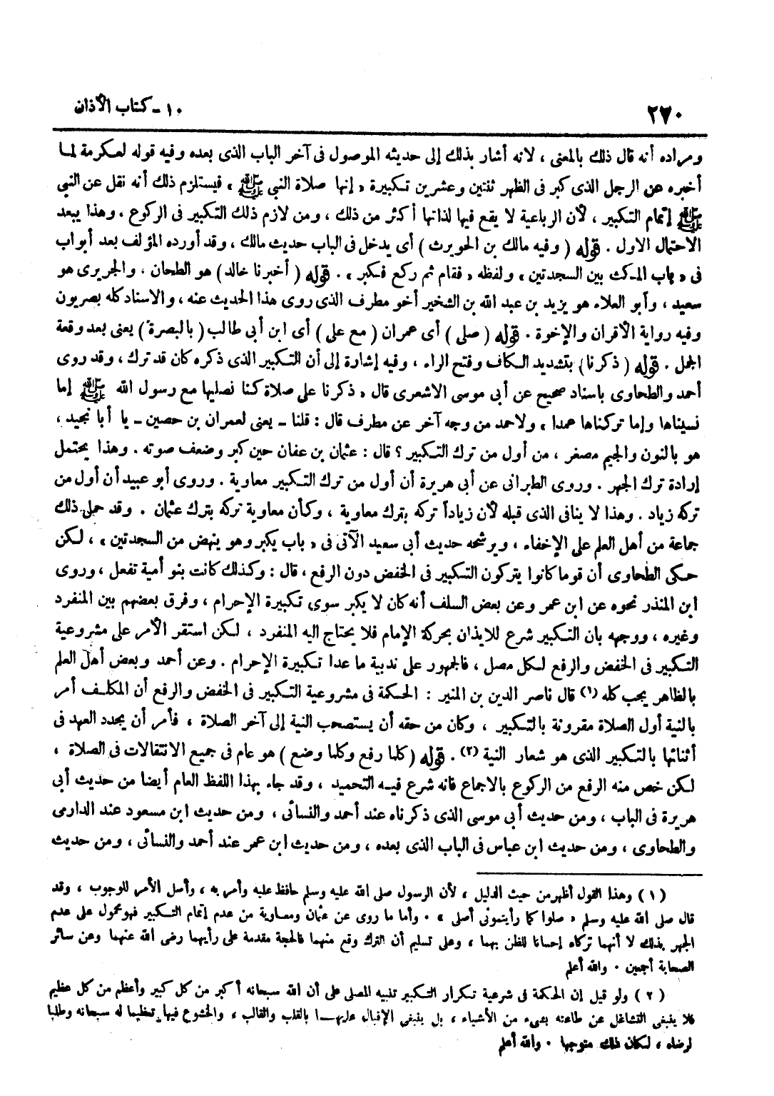[784] قَوْله أخبرنَا خَالِدٌ هُوَ الطَّحَّانُ وَالْجَرِيرِيُّ هُوَ سَعِيدٌ وَأَبُو الْعَلَاءِ هُوَ يَزِيدُ بْنُ عَبْدِ اللَّهِ بْنِ الشِّخِّيرِ أَخُو مُطَرِّفٍ الَّذِي رَوَى هَذَا الْحَدِيثَ عَنْهُ وَالْإِسْنَادُ كُلُّهُ بَصْرِيُّونَ وَفِيهِ رِوَايَةُ الْأَقْرَانِ وَالْإِخْوَةِ قَوْلُهُ صَلَّى أَيْ عِمْرَانُ مَعَ عَلِيٍّ أَي بن أَبِي طَالِبٍ بِالْبَصْرَةِ يَعْنِي بَعْدَ وَقْعَةِ الْجَمَلِ قَوْلُهُ ذَكَّرَنَا بِتَشْدِيدِ الْكَافِ وَفَتْحِ الرَّاءِ وَفِيهِ إِشَارَةٌ إِلَى أَنَّ التَّكْبِيرَ الَّذِي ذَكَرَهُ كَانَ قَدْ تُرِكَ وَقَدْ رَوَى أَحْمَدُ وَالطَّحَاوِيُّ بِإِسْنَادٍ صَحِيحٍ عَنْ أَبِي مُوسَى الْأَشْعَرِيِّ قَالَ ذَكَّرَنَا عَلِيٌّ صَلَاةً كُنَّا نُصَلِّيهَا مَعَ رَسُولِ اللَّهِ صَلَّى اللَّهُ عَلَيْهِ وَسَلَّمَ إِمَّا نَسِينَاهَا وَإِمَّا تَرَكْنَاهَا عَمْدًا وَلِأَحْمَدَ مِنْ وَجْهٍ آخَرَ عَنْ مُطَرِّفٍ قَالَ قُلْنَا يَعْنِي لِعِمْرَانَ بْنِ حُصَيْنٍ يَا أَبَا نُجَيْدٍ هُوَ بِالنُّونِ وَالْجِيمِ مُصَغَّرٌ مَنْ أَوَّلُ مَنْ تَرَكَ التَّكْبِيرَ قَالَ عُثْمَانُ بْنُ عَفَّانَ حِينَ كَبَّرَ وَضَعُفَ صَوْتُهُ وَهَذَا يُحْتَمَلُ إِرَادَةَ تَرْكِ الْجَهْرِ وَرَوَى الطَّبَرَانِيُّ عَنْ أَبِي هُرَيْرَةَ أَنَّ أَوَّلَ مَنْ تَرَكَ التَّكْبِيرَ مُعَاوِيَةُ وَرَوَى أَبُو عُبَيْدٍ أَنَّ أَوَّلَ مَنْ تَرَكَهُ زِيَادٌ وَهَذَا لَا يُنَافِي الَّذِي قَبْلَهُ لِأَنَّ زِيَادًا تَرَكَهُ بِتَرْكِ مُعَاوِيَةَ وَكَأَنَّ مُعَاوِيَةَ تَرَكَهُ بِتَرْكِ عُثْمَانَ وَقَدْ حَمَلَ ذَلِكَ جَمَاعَةٌ مِنْ أَهْلِ الْعِلْمِ عَلَى الْإِخْفَاءِ وَيُرَشِّحُهُ حَدِيثُ أَبِي سَعِيدٍ الْآتِي فِي بَابِ يُكَبِّرُ وَهُوَ يَنْهَضُ مِنَ السَّجْدَتَيْنِ لَكِنْ حَكَى الطَّحَاوِيُّ أَنَّ قَوْمًا كَانُوا يَتْرُكُونَ التَّكْبِيرَ فِي الْخَفْضِ دُونَ الرَّفْعِ قَالَ وَكَذَلِكَ كَانَتْ بَنُو أُمَيَّةَ تَفْعَلُ وروى بن الْمُنْذر نَحوه عَن بن عُمَرَ وَعَنْ بَعْضِ السَّلَفِ أَنَّهُ كَانَ لَا يُكَبِّرُ سِوَى تَكْبِيرَةِ الْإِحْرَامِ وَفَرَّقَ بَعْضُهُمْ بَيْنَ الْمُنْفَرِدِ وَغَيْرِهِ وَوَجَّهَهُ بِأَنَّ التَّكْبِيرَ شُرِعَ لِلْإِيذَانِ بِحَرَكَةِ الْإِمَامِ فَلَا يَحْتَاجُ إِلَيْهِ الْمُنْفَرِدُ لَكِنِ اسْتَقَرَّ الْأَمْرُ عَلَى مَشْرُوعِيَّةِ التَّكْبِيرِ فِي الْخَفْضِ وَالرَّفْعِ لِكُلِّ مُصَلٍّ فَالْجُمْهُورُ عَلَى نَدْبِيَّةِ مَا عَدَا تَكْبِيرَةَ الْإِحْرَامِ وَعَنْ أَحْمَدَ وَبَعْضِ أَهْلِ الْعلم بِالظَّاهِرِ يجب كُله قَالَ نَاصِر الدّين بن الْمُنِيرِ الْحِكْمَةُ فِي مَشْرُوعِيَّةِ التَّكْبِيرِ فِي الْخَفْضِ وَالرَّفْعِ أَنَّ الْمُكَلَّفَ أُمِرَ بِالنِّيَّةِ أَوَّلَ الصَّلَاةِ مَقْرُونَةً بِالتَّكْبِيرِ وَكَانَ مِنْ حَقِّهِ أَنْ يَسْتَصْحِبَ النِّيَّةَ إِلَى آخِرِ الصَّلَاةِ فَأُمِرَ أَنْ يُجَدِّدَ الْعَهْدَ فِي أَثْنَائِهَا بِالتَّكْبِيرِ الَّذِي هُوَ شِعَارُ النِّيَّة قَوْلُهُ كُلَّمَا رَفَعَ وَكُلَّمَا وَضَعَ هُوَ عَامٌّ فِي جَمِيعِ الِانْتِقَالَاتِ فِي الصَّلَاةِ لَكِنْ خُصَّ مِنْهُ الرَّفْعُ مِنَ الرُّكُوعِ بِالْإِجْمَاعِ فَإِنَّهُ شُرِعَ فِيهِ التَّحْمِيدُ وَقَدْ جَاءَ بِهَذَا اللَّفْظِ الْعَامِّ أَيْضًا مِنْ حَدِيثِ أَبِي هُرَيْرَةَ فِي الْبَابِ وَمِنْ حَدِيثِ أَبِي مُوسَى الَّذِي ذَكَرْنَاهُ عِنْدَ أَحْمد وَالنَّسَائِيّ وَمن حَدِيث بن مَسْعُود عِنْد الدَّارمِيّ والطَّحَاوِي وَمن حَدِيث بن عَبَّاسٍ فِي الْبَابِ الَّذِي بَعْدَهُ وَمِنْ حَدِيثِ بن عُمَرَ عِنْدَ أَحْمَدَ وَالنَّسَائِيِّ وَمِنْ حَدِيثِ