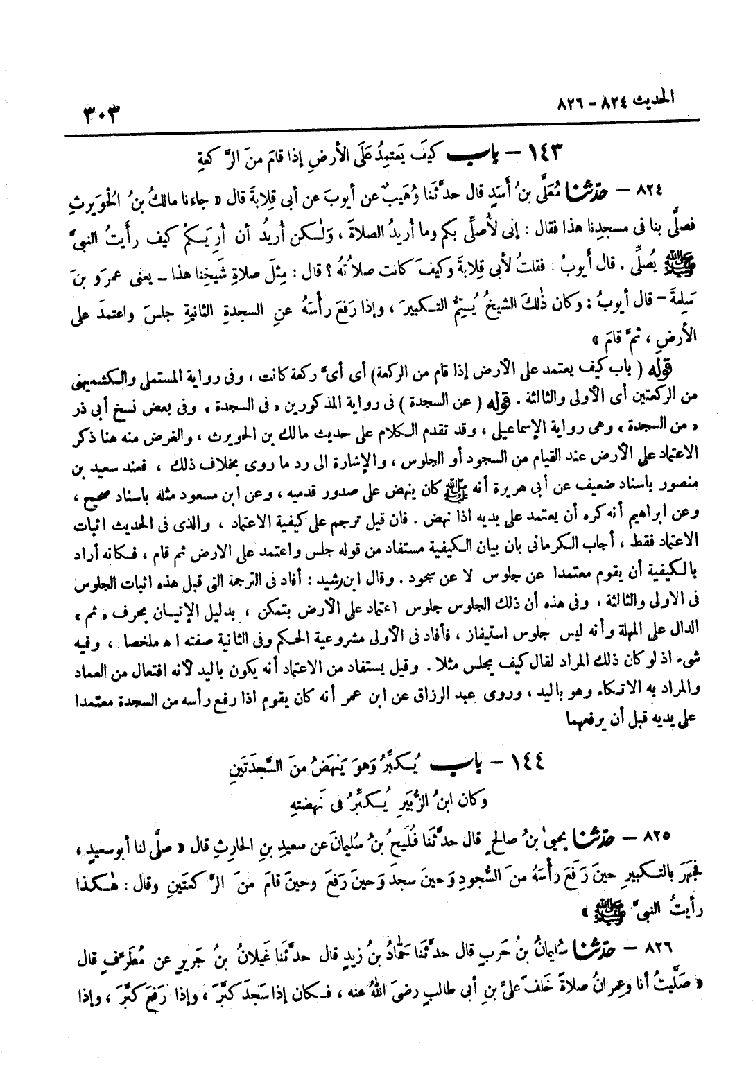[824] قَوْلِهِ جَلَسَ وَاعْتَمَدَ عَلَى الْأَرْضِ ثُمَّ قَامَ فَكَأَنَّهُ أَرَادَ بِالْكَيْفِيَّةِ أَنْ يَقُومَ مُعْتَمِدًا عَنْ جُلُوسٍ لَا عَن سُجُود وَقَالَ بن رَشِيدٍ أَفَادَ فِي التَّرْجَمَةِ الَّتِي قَبْلَ هَذِهِ إِثْبَاتَ الْجُلُوسِ فِي الْأُولَى وَالثَّالِثَةِ وَفِي هَذِهِ أَنَّ ذَلِكَ الْجُلُوسَ جُلُوسُ اعْتِمَادٍ عَلَى الْأَرْضِ بِتَمَكُّنٍ بِدَلِيلِ الْإِتْيَانِ بِحَرْفِ ثُمَّ الدَّالِّ عَلَى الْمُهْلَةِ وَأَنَّهُ لَيْسَ جُلُوسَ اسْتِيفَازٍ فَأَفَادَ فِي الْأُولَى مَشْرُوعِيَّةَ الْحُكْمِ وَفِي الثَّانِيَةِ صِفَتَهُ اه مُلَخَّصًا وَفِيهِ شَيْءٌ إِذْ لَوْ كَانَ ذَلِكَ الْمُرَادَ لَقَالَ كَيْفَ يَجْلِسُ مَثَلًا وَقِيلَ يُسْتَفَادُ مِنَ الِاعْتِمَادِ أَنَّهُ يَكُونُ بِالْيَدِ لِأَنَّهُ افْتِعَالٌ مِنَ الْعِمَادِ وَالْمُرَادُ بِهِ الِاتِّكَاءُ وَهُوَ بِالْيَدِ وروى عبد الرَّزَّاق عَن بن عُمَرَ أَنَّهُ كَانَ يَقُومُ إِذَا رَفَعَ رَأْسَهُ مِنَ السَّجْدَةِ مُعْتَمِدًا عَلَى يَدَيْهِ قَبْلَ أَنْ يرفعهما