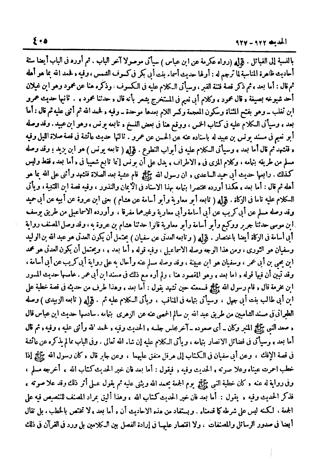 [925] قَوْلُهُ تَابِعَهُ أَبُو مُعَاوِيَةَ وَأَبُو أُسَامَةَ عَنْ هِشَام يَعْنِي بن عُرْوَةَ عَنْ أَبِيهِ عَنْ أَبِي حَمِيدٍ وَقَدْ وَصَلَهُ مُسْلِمٌ عَنْ أَبِي كُرَيْبٍ عَنْ أَبِي أُسَامَةَ وَأَبِي مُعَاوِيَةَ وَغَيْرِهِمَا مُفَرَّقًا وَأَوْرَدَهُ الْإِسْمَاعِيلِيُّ مِنْ طَرِيقِ يُوسُفَ بْنِ مُوسَى حَدَّثَنَا جَرِيرٌ وَوَكِيعٌ وَأَبُو أُسَامَةَ وَأَبُو مُعَاوِيَةَ قَالُوا حَدَّثَنَا هِشَامُ بْنُ عُرْوَةَ بِهِ وَقَدْ وَصَلَ الْمُصَنَّفُ رِوَايَةَ أَبِي أُسَامَةَ فِي الزَّكَاةِ أَيْضًا بِاخْتِصَارٍ قَوْلُهُ وَتَابَعَهُ الْعَدَنِيُّ عَنْ سُفْيَانَ يُحْتَمَلُ أَنْ يَكُونَ الْعَدَنِيُّ هُوَ عَبْدَ اللَّهِ بْنَ الْوَلِيدِ وَسُفْيَانُ هُوَ الثَّوْرِيُّ وَمِنْ هَذَا الْوَجْهِ وَصَلَهُ الْإِسْمَاعِيلِيُّ وَفِيهِ قَوْلُهُ أَمَّا بَعْدُ وَيُحْتَمَلُ أَنْ يَكُونَ الْعَدَنِيُّ هُوَ مُحَمَّدَ بْنَ يَحْيَى بْنِ أبي عمر وسُفْيَان هُوَ بن عُيَيْنةَ وَقَدْ وَصَلَهُ مُسْلِمٌ عَنْهُ وَأَحَالَ بِهِ عَلَى رِوَايَةِ أَبِي كُرَيْبٍ عَنْ أَبِي أُسَامَةَ وَقَدْ تَبَيَّنَ أَنَّ فِيهَا قَوْلَهُ أَمَّا بَعْدُ وَهُوَ الْمَقْصُودُ هُنَا وَلَمْ أَرَهُ مَعَ ذَلِكَ فِي مُسْند بن أَبِي عُمَرَ خَامِسُهَا حَدِيثُ الْمِسْوَرِ بْنِ مَخْرَمَةَ قَالَ قَامَ رَسُولُ اللَّهِ صَلَّى اللَّهُ عَلَيْهِ وَسَلَّمَ فَسَمِعْتُهُ حِينَ تَشَهَّدَ يَقُولُ أَمَّا بَعْدُ وَهَذَا طَرَفٌ مِنْ حَدِيثِهِ فِي قِصَّةِ خُطْبَةِ عَلِيِّ بْنِ أَبِي طَالِبٍ بِنْتِ أَبِي جَهْلٍ وَسَيَأْتِي بِتَمَامِهِ فِي الْمَنَاقِبِ وَيَأْتِي الْكَلَامُ عَلَيْهِ ثمَّ قَوْلُهُ تَابَعَهُ الزُّبَيْدِيُّ وَصَلَهُ الطَّبَرَانِيُّ فِي مُسْنَدِ الشَّامِيِّينَ مِنْ طَرِيقِ عَبْدِ اللَّهِ بْنِ سَالِمٍ الْحِمَّصِيِّ عَنهُ عَن الزُّهْرِيّ بِتَمَامِهِ سادسها حَدِيث بن عَبَّاسٍ قَالَ صَعِدَ النَّبِيُّ صَلَّى اللَّهُ عَلَيْهِ وَسَلَّمَ الْمِنْبَرَ وَكَانَ أَيْ صُعُودُهُ آخِرَ مَجْلِسٍ جَلَسَهُ الْحَدِيثَ وَفِيهِ فَحَمِدَ اللَّهَ وَأَثْنَى عَلَيْهِ وَفِيهِ ثُمَّ قَالَ أَمَّا بَعْدُ وَسَيَأْتِي فِي فَضَائِلِ الْأَنْصَارِ بِتَمَامِهِ وَيَأْتِي الْكَلَامُ عَلَيْهِ إِنْ شَاءَ اللَّهُ تَعَالَى وَفِي الْبَابِ مِمَّا لَمْ يَذْكُرْهُ عَنْ عَائِشَةَ فِي قِصَّةِ الْإِفْكِ وَعَنْ أَبِي سُفْيَانَ فِي الْكِتَابِ إِلَى هِرَقْلَ مُتَّفَقٌ عَلَيْهِمَا وَعَنْ جَابِرٍ قَالَ كَانَ رَسُولُ اللَّهِ صَلَّى اللَّهُ عَلَيْهِ وَسَلَّمَ إِذَا خَطَبَ احْمَرَّتْ عَيْنَاهُ وَعَلَا صَوْتُهُ الْحَدِيثَ وَفِيهِ فَيَقُولُ أَمَّا بَعْدُ فَإِنَّ خَيْرَ الْحَدِيثِ كِتَابُ اللَّهِ أَخْرَجَهُ مُسْلِمٌ وَفِي رِوَايَةٍ لَهُ عَنْهُ كَانَ خُطْبَةُ النَّبِيِّ صَلَّى اللَّهُ عَلَيْهِ وَسَلَّمَ يَوْمَ الْجُمُعَةِ يَحْمَدُ اللَّهَ وَيُثْنِي عَلَيْهِ ثُمَّ يَقُولُ عَلَى أَثَرِ ذَلِكَ وَقَدْ عَلَا صَوْتُهُ فَذَكَرَ الْحَدِيثَ وَفِيهِ يَقُولُ أَمَّا بَعْدُ فَإِنَّ خَيْرَ الْحَدِيثِ كِتَابُ اللَّهِ وَهَذَا أَلْيَقُ بِمُرَادِ الْمُصَنِّفِ لِلتَّنْصِيصِ فِيهِ عَلَى الْجُمُعَةِ لَكِنَّهُ لَيْسَ عَلَى شَرْطِهِ كَمَا قَدَّمْنَاهُ وَيُسْتَفَادُ مِنْ هَذِهِ الْأَحَادِيثِ أَنَّ أَمَّا بَعْدُ لَا تَخْتَصُّ بِالْخُطَبِ بَلْ تُقَالُ أَيْضًا فِي صُدُورِ الرَّسَائِلِ وَالْمُصَنَّفَاتِ وَلَا اقْتِصَارَ عَلَيْهَا فِي إِرَادَةِ الْفَصْلِ بَيْنَ الْكَلَامَيْنِ بَلْ وَرَدَ فِي الْقُرْآنِ فِي ذَلِكَ