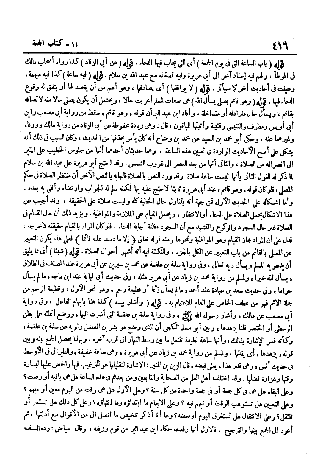 أَيِ الَّتِي يُجَابُ فِيهَا الدُّعَاءُ قَوْلُهُ عَنْ أَبِي الزِّنَادِ كَذَا رَوَاهُ أَصْحَابُ مَالِكٍ فِي الْمُوَطَّأ وَلَهُم فِيهِ إِسْنَادٌ آخَرُ إِلَى أَبِي هُرَيْرَةَ وَفِيهِ قِصَّةٌ لَهُ مَعَ عَبْدِ اللَّهِ بْنِ سَلَامٍ