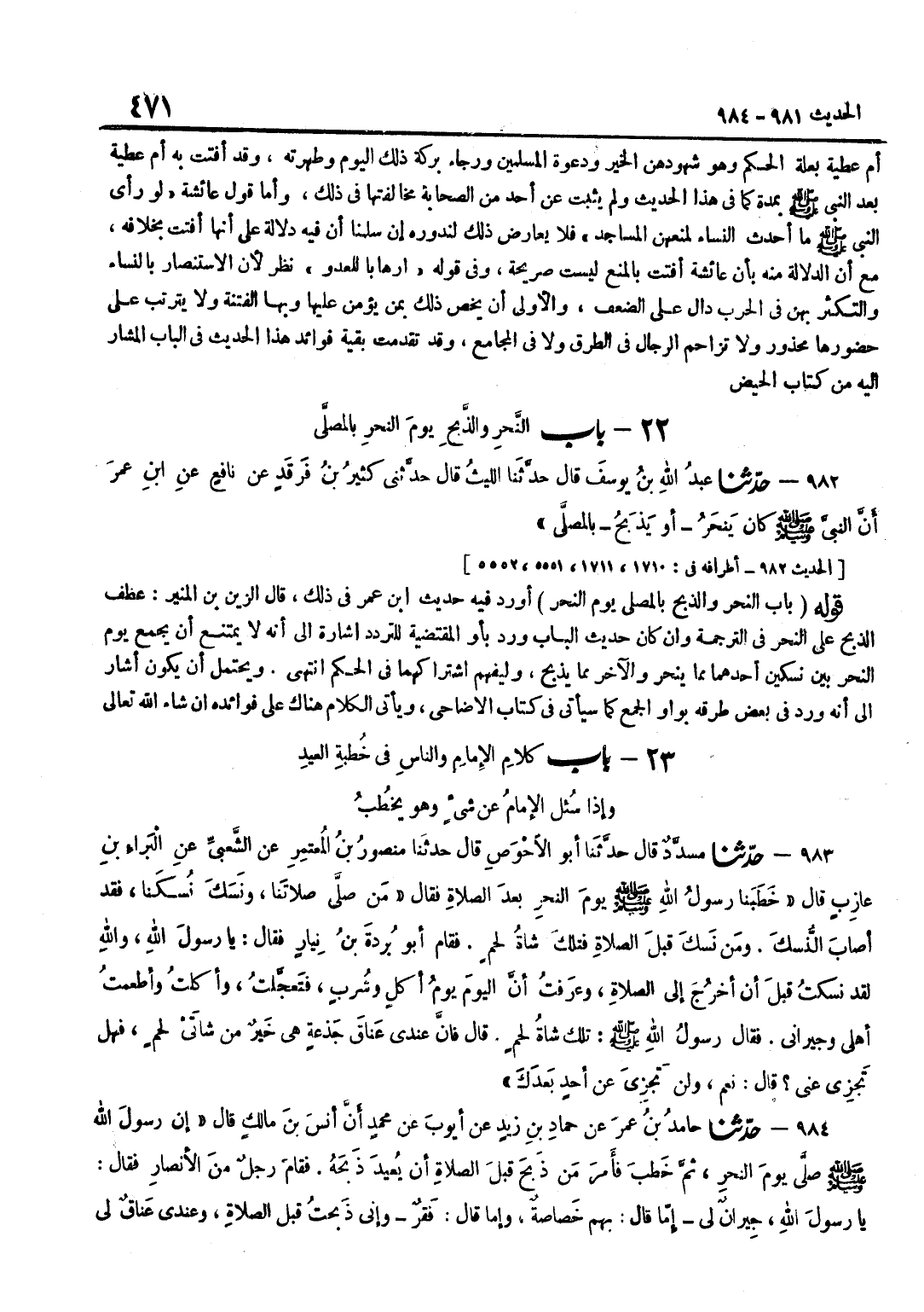 أورد فِيهِ حَدِيث بن عُمَرَ فِي ذَلِكَ قَالَ الزَّيْنُ بْنُ الْمُنِيرِ عَطْفُ الذَّبْحِ عَلَى النَّحْرِ فِي التَّرْجَمَةِ وَإِنْ كَانَ حَدِيثُ الْبَابِ وَرَدَ بِأَوِ الْمُقْتَضِيَةِ لِلتَّرَدُّدِ إِشَارَةً إِلَى أَنَّهُ لَا يَمْتَنِعُ أَنْ يَجْمَعَ يَوْمَ النَّحْرِ بَيْنَ نُسُكَيْنِ أَحَدُهُمَا مِمَّا يُنْحَرُ وَالْآخَرُ مِمَّا يُذْبَحُ وَلِيُفْهَمَ اشْتِرَاكُهُمَا فِي الْحُكْمِ انْتَهَى وَيُحْتَمَلُ أَنْ يَكُونَ أَشَارَ إِلَى أَنَّهُ وَرَدَ فِي بَعْضِ طُرُقِهِ بِوَاوِ الْجَمْعِ كَمَا سَيَأْتِي فِي كِتَابِ الْأَضَاحِيِّ وَيَأْتِي الْكَلَامُ هُنَاكَ على فَوَائده ان شَاءَ الله تَعَالَى