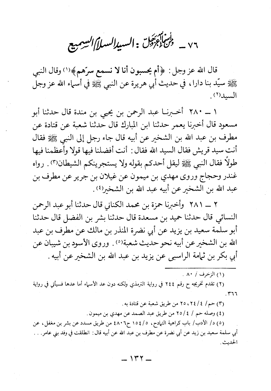 ٧٦ - وَمِنْ أَسْمَاءِ الله عَزَّ وَجَلَّ: السَّيِّدُ السَّلَامُ السَّمِيعُ