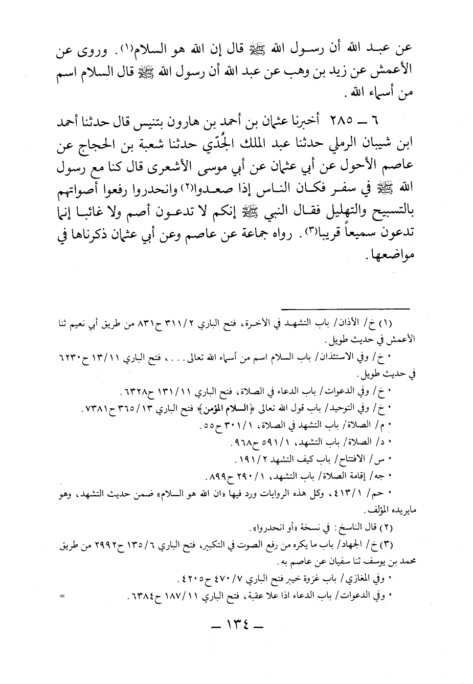 ٢٨٥ - أَخْبَرَنَا عُثْمَانُ بْنُ أَحمَد بْنِ هَارُونَ، بِتِنِّيسَ، قَالَ: حَدثنا أَحمَدُ بْنُ شَيْبَانَ الرَّمْلِيُّ، حَدَّثَنا عَبْدُ المَلِكِ الجُدِّيُّ، حَدثنا شُعبة بْنُ الحَجَّاجِ، عَنْ عَاصِمٍ الأَحْوَلِ، عَنْ أَبِي عُثْمَانَ، عَنْ أَبِي مُوسَى الأَشْعَرِيِّ قَالَ: كُنَّا مَعَ رَسُولِ الله صَلى الله عَليه وسَلم فِي سَفَرٍ، فَكَانَ النَّاسُ إِذَا صَعِدُوا وَانْحَدَرُوا رَفَعُوا أَصْوَاتَهُمْ بِالتَّسْبِيحِ وَالتَّهْلِيلِ، فَقَالَ النَّبِيُّ صَلى الله عَليه وسَلم: إِنَّكُمْ لَا تَدْعُونَ أَصَمَّ، وَلَا غَائِبًا، إِنَّمَا تَدْعُونَ سَمِيعًا قَرِيبًا.