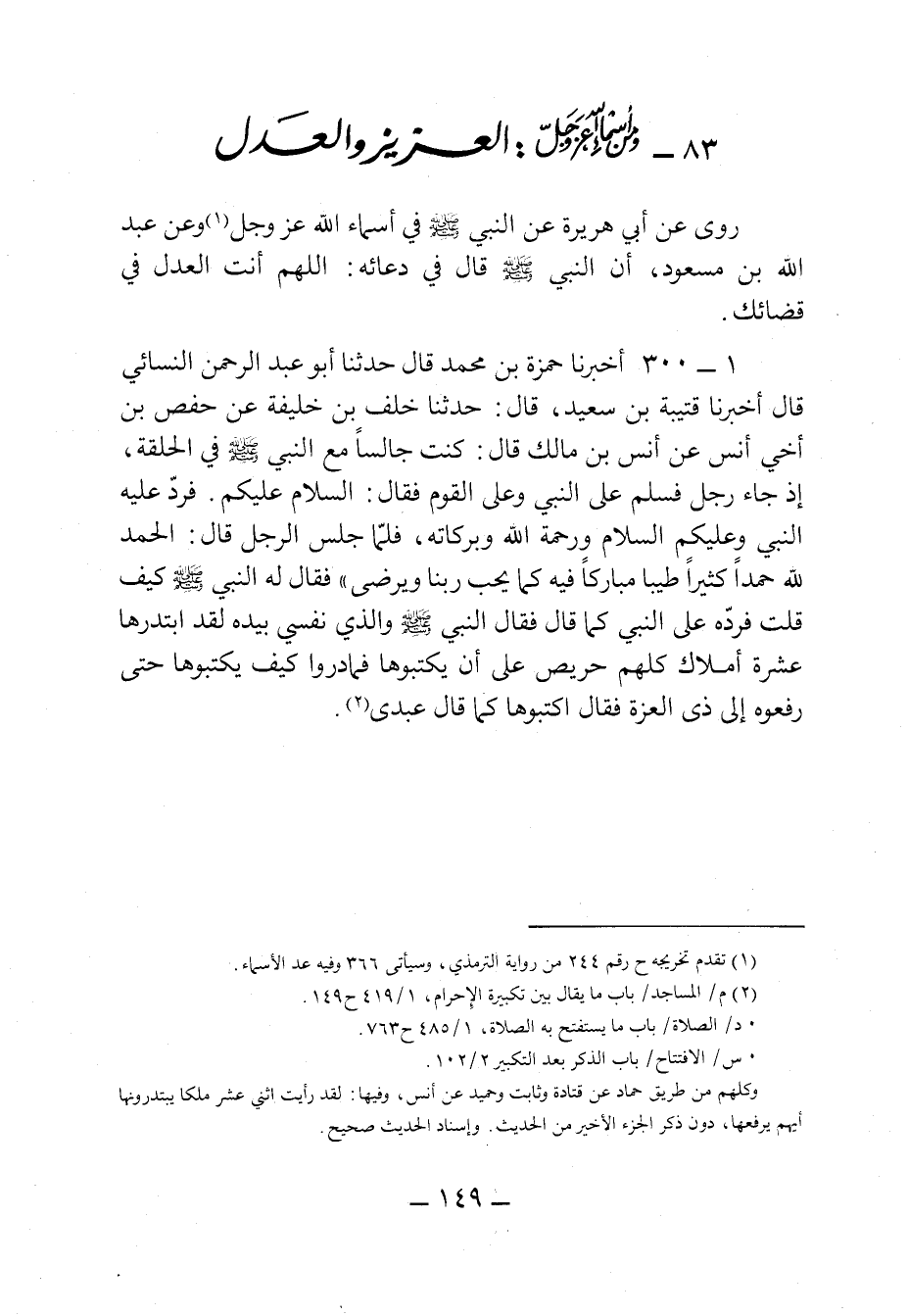٨٣ - وَمِنْ أَسْمَاءِ الله عَزَّ وَجَلَّ: العَزِيزُ وَالعَدْلُ.