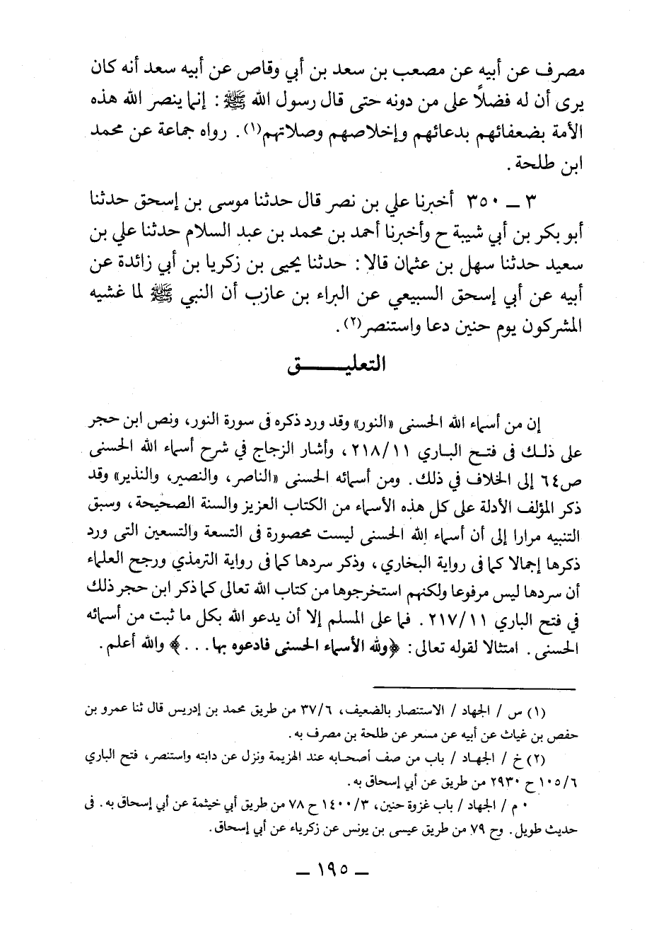 ٣٥٠ - أَخْبَرَنَا عَلِيُّ بْنُ نَصْرٍ، قَالَ: حَدثنا مُوسَى بْنُ إِسْحَاقَ، حَدثنا أَبُو بَكْرِ بْنُ أَبِي شَيْبَةَ (ح) وَأَخْبَرَنَا أَحمَدُ بْنُ مُحَمَّدِ بْنِ عَبْدِ السَّلَامِ، حَدثنا عَلِيُّ بْنُ سَعِيدٍ، حَدثنا سَهْلُ بْنُ عُثْمَانَ، قَالَا: حَدثنا يَحْيَى بْنُ زَكَرِيَّا بْنِ أَبِي زَائِدَةَ، عَنْ أَبِيهِ، عَنْ أَبِي إِسْحَاقَ السَّبِيعِيِّ، عَنِ البَرَاءِ بْنِ عَازِبٍ، أَنَّ النَّبِيَّ صَلى الله عَليه وسَلم لمَّا غَشِيَهُ المُشْرِكُونَ يَوْمَ حُنَيْنٍ دَعَا وَاسْتَنْصَرَ.