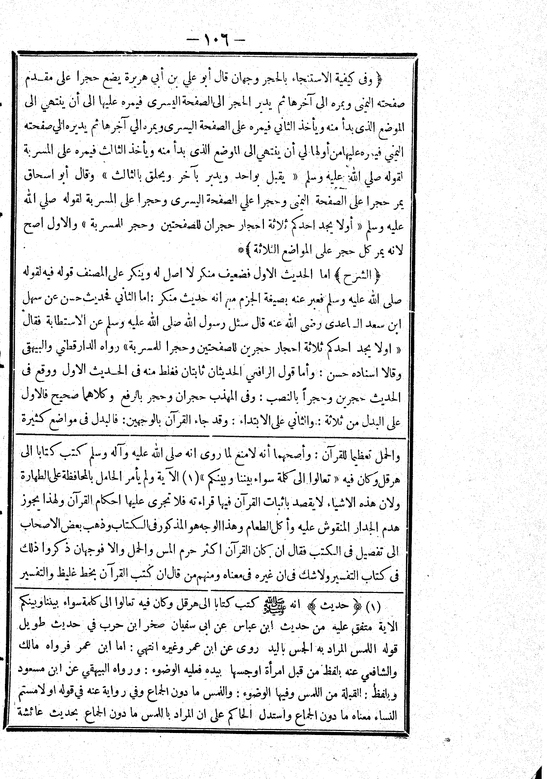 [والحمل تعظيما للقرآن: وأصحهما أنه لامنع لما روى انه صلى الله عليه وسلم كتب كتابا إلى هرقل وكان فيه (تعالوا إلى كلمة سواء بيننا وبينكم) الآية ولم يأمر الحامل بالمحافظة على الطهارة ولان هذه الاشياء لا يقصد باثبات القرآن فيها قراءته فلا تجرى عليها احكام القرآن ولهذا يجوز هدم الجدار المنقوش عليه وأكل الطعام وهذا الوجه هو المذكور في الكتاب وذهب بعض الاصحاب