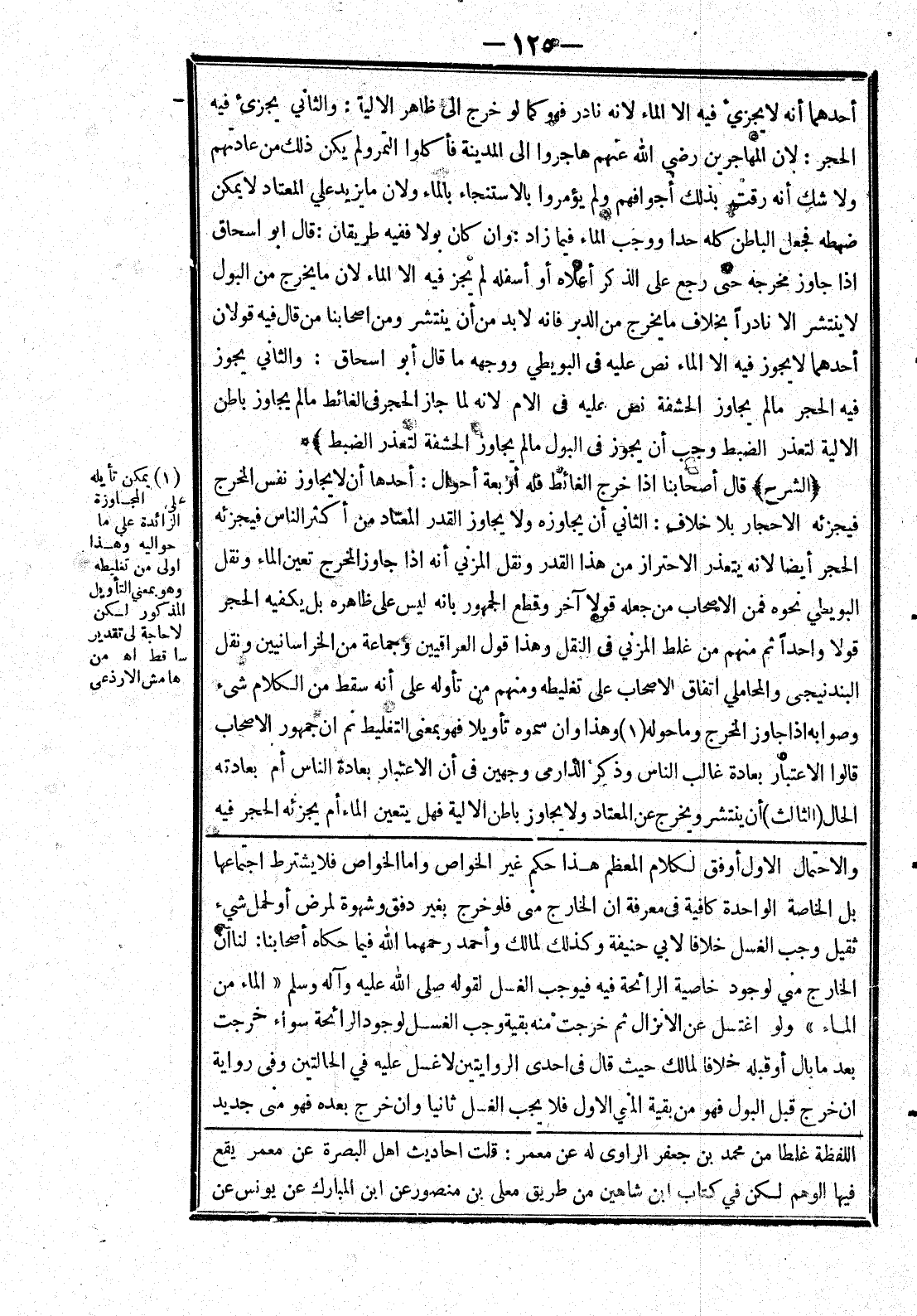 [والاحتمال الاول أوفق لكلام المعظم هذا حكم غير الخواص واما الخواص فلا يشترط اجتماعها بل الخاصة الواحدة كافية في معرفة الخارج منى فلو خرج بغير دفق وشهوة لمرض أو لحمل شئ ثقيل وجب الغسل خلافا لابي حنيفة وكذلك لمالك وأحمد رحمهما الله فيما حكاه أصحابنا: لنا ان الخارج مني لوجود خاصية الرائحة فيه فيوجب الغسل لقوله صلى الله عليه وسلم (الماء من الماء) ولو اغتسل عن الانزال ثم خرجت منه بقية وجب اغسل لوجود الرائحة سواء خرجت بعد ما بال أو قبله خلافا لمالك حيث قال في احدى الروايتين لا غسل عليه في الحالتين وفى رواية ان خرج قبل البول فهو من بقية المني الاول فلا يجب الغسل ثانيا وان خرج بعده فهو منى جديد