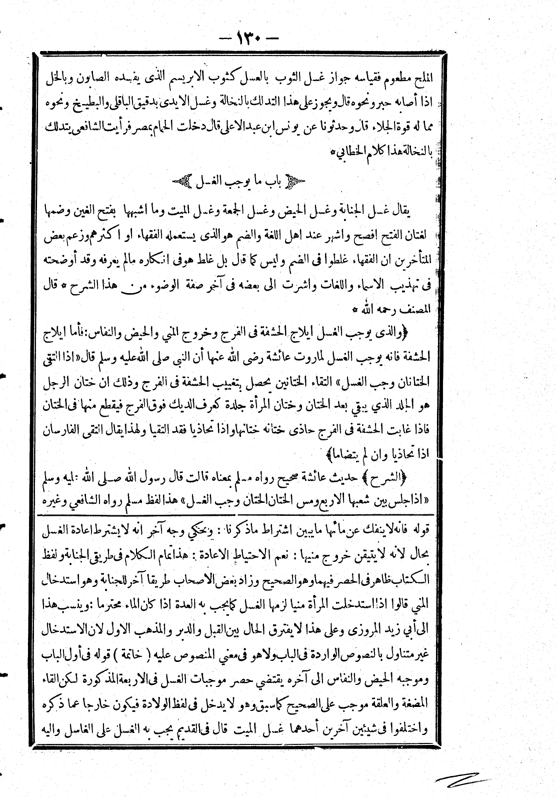 [قوله فانه لا ينفك عن مائها ما يبين اشتراط ما ذكرنا: ويحكي وجه آخر انه لا يشترط اعادة الغسل