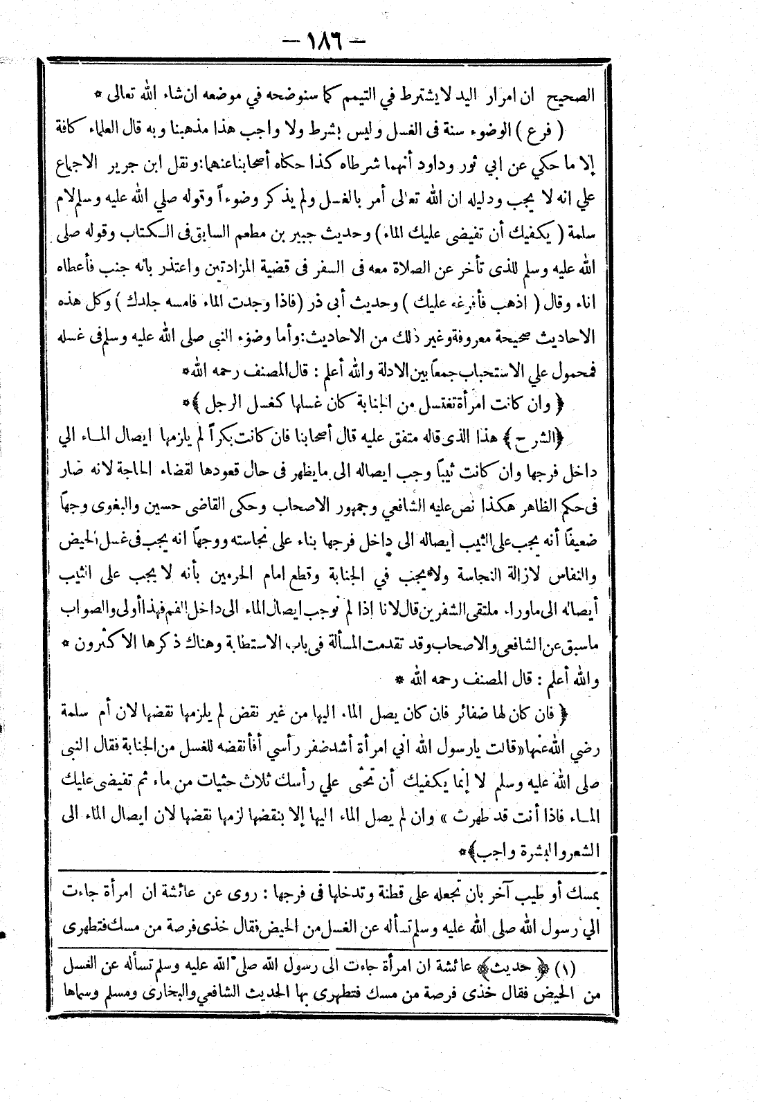 [بمسك أو طيب آخر بان تجعله على قطنة وتدخلها في فرجها: روى عن عائشة ان امرأة جاءت الي رسول الله صلى الله عليه وسلم تسأله عن الغسل من الحيض فقال خذى فرصة من مسك فتطهري]