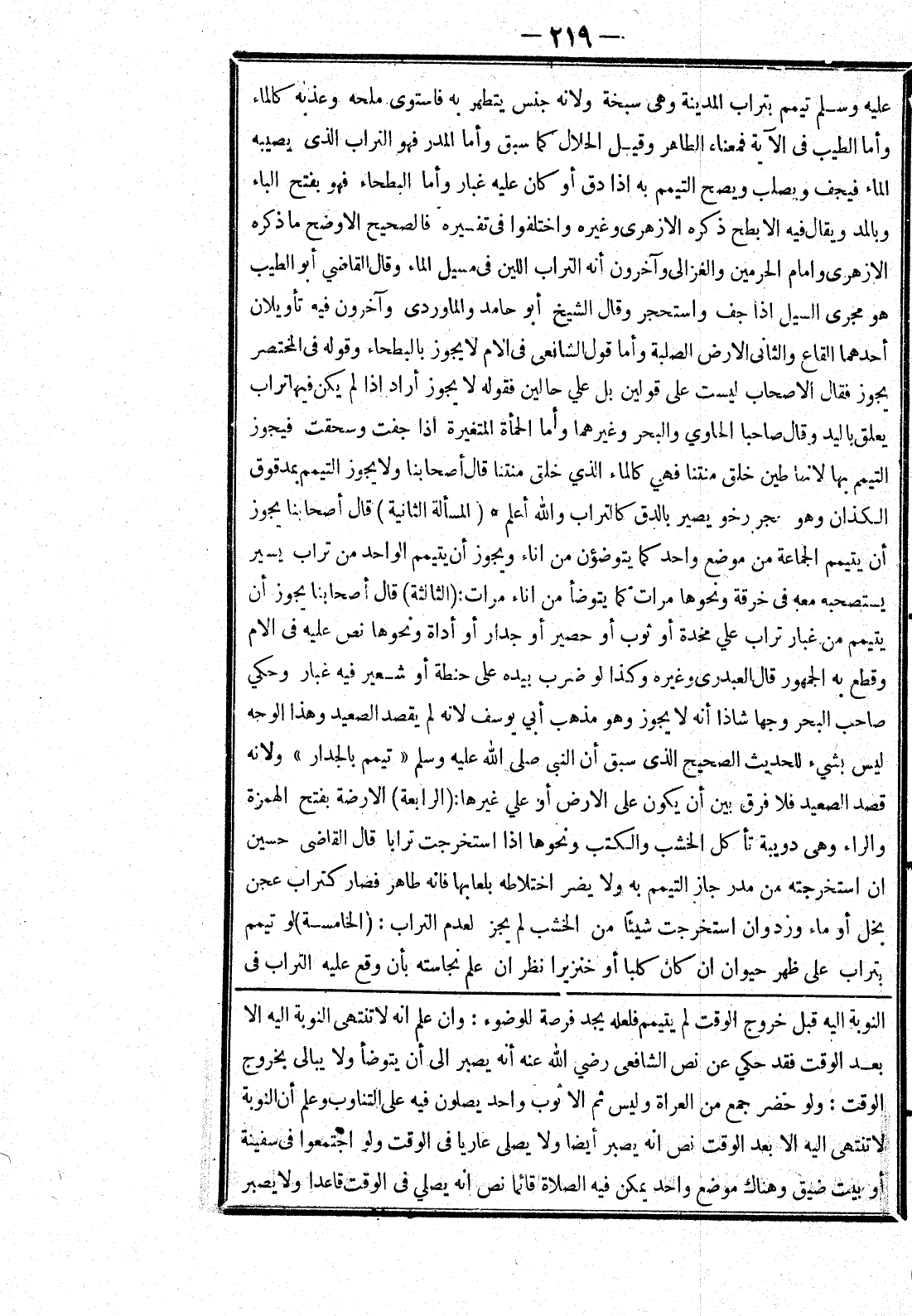 بعد الوقت فقد حكي عن نص الشافعي رضي الله عنه أنه يصبر إلى أن يتوضأ ولا يبالى بخروج الوقت: ولو حضر جمع من العراة وليس ثم الاثوب واحد يصلون فيه على التناوب وعلم أن النوبة لا تنتهى إليه الا بعد الوقت نص انه يصبر أيضا ولا يصلى عاريا يفى الوقت ولو اجتمعوا في سفينة أو بيت ضيق وهناك موضع واحد يمكن فيه الصلاة قائما نص انه يصلي في الوقت قاعدا ولا يصبر]