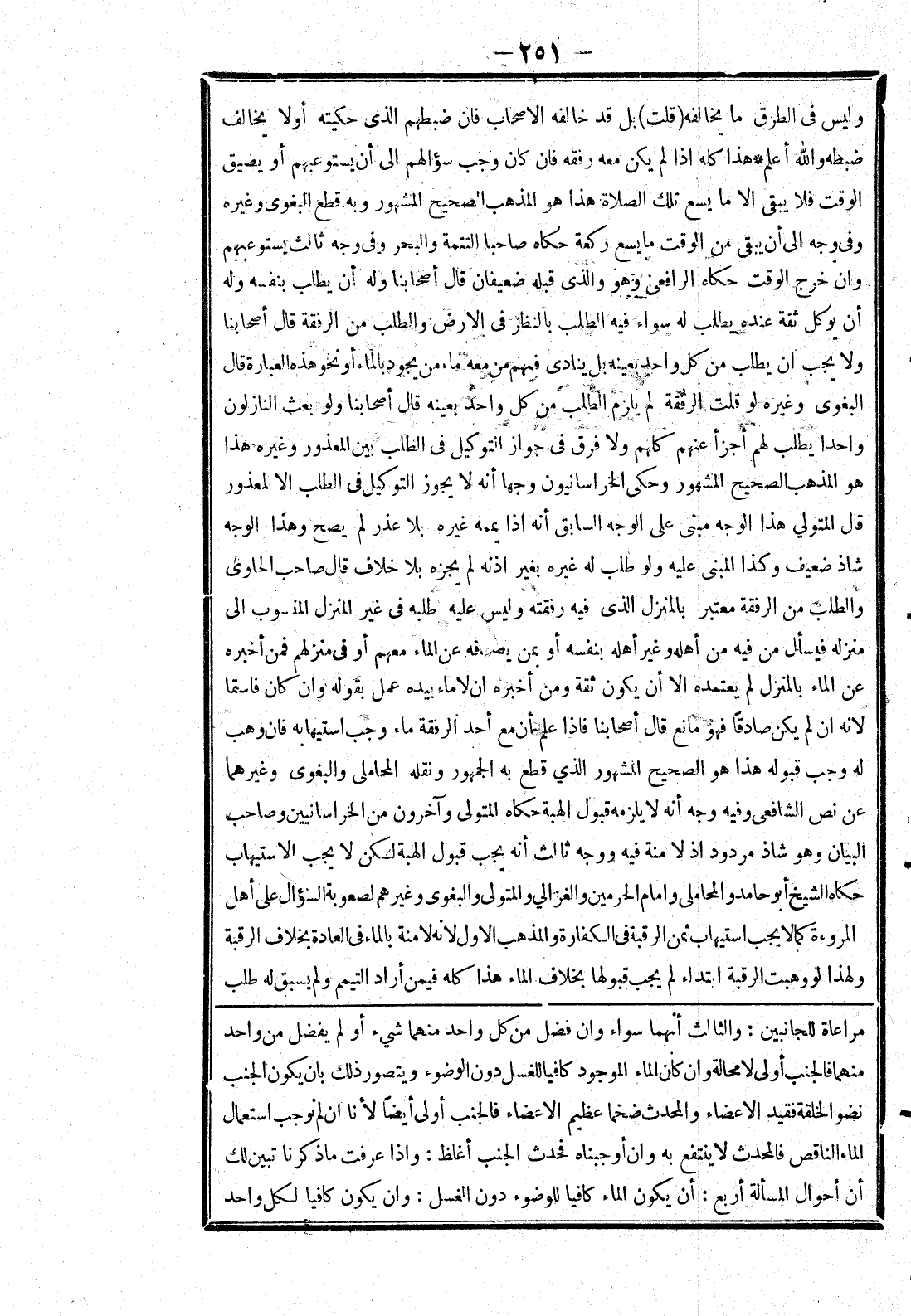 [مراعاة للجانبين: والثالث أنهما سواء وان فضل من كل واحد منهما شئ أو لم يفضل من واحد منهما فالجنب أولى لا محالة وان كان الماء الموجود كافيا للغسل دون الوضوء ويتصور ذلك بان يكون الجنب نضو الخلقة فقيد الاعضاء والمحدث ضخما عظيم الاعضاء فالجنب أولى أيضا لانا ان لم نوجب استعمال الماء الناقص فالمحدث لا ينتفع به وان أوجبناه فحدث الجنب أغلظ: وإذا عرفت ما ذكرنا تبين لك ان أحوال المسألة أربع: أن يكون الماء كافيا للوضوء دون الغسل: وان يكون كافيا لكل واحد]