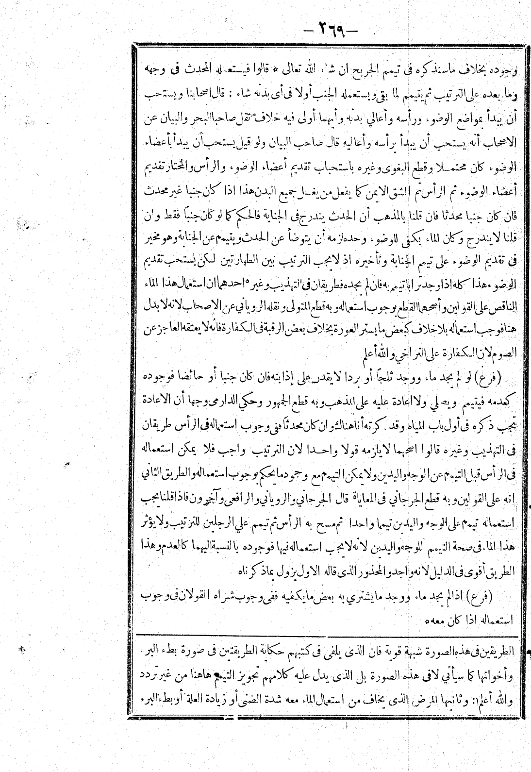 [الطريقين في هذه الصورة شبهة قوية فان الذى يلفى في كتبهم حكاية الطريقتين في صورة بطء البر وأخواتها كما سيأتي لا في هذه الصورة بل الذى يدل عليه كلامهم تجويز التيمم هاهنا من غير تردد والله أعلم: وثانيها المرض الذى يخاف من استعمال الماء معه شدة الضنى أو زيادة العلة أو بطء البرء]