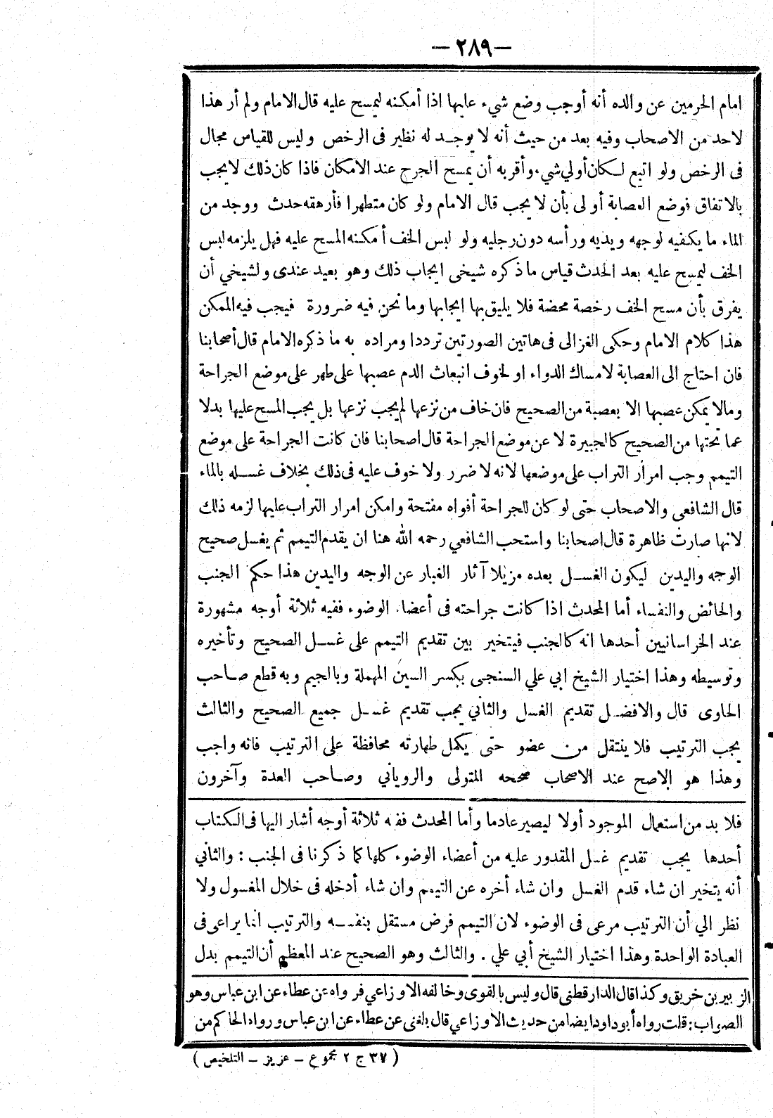 [فلابد من استعمال الموجود أولا ليصير عادما وأما المحدث ففيه ثلاثة أوجه أشار إليها في الكتاب أحدها يجب تقديم غسل المقدور عليه من أعضاء الوضوء كلها كما ذكرنا في الجنب: والثاني أنه يتخير ان شاء قدم الغسل وان شاء أخره عن التيمم وان شاء أدخله في خلال المغسول ولا نظر الي أن الترتيب مرعى في الوضوء لان التيمم فرض مستقل بنفسه والترتيب انما يراعى في العبادة الواحدة وهذا اختيار الشيخ أبي علي.