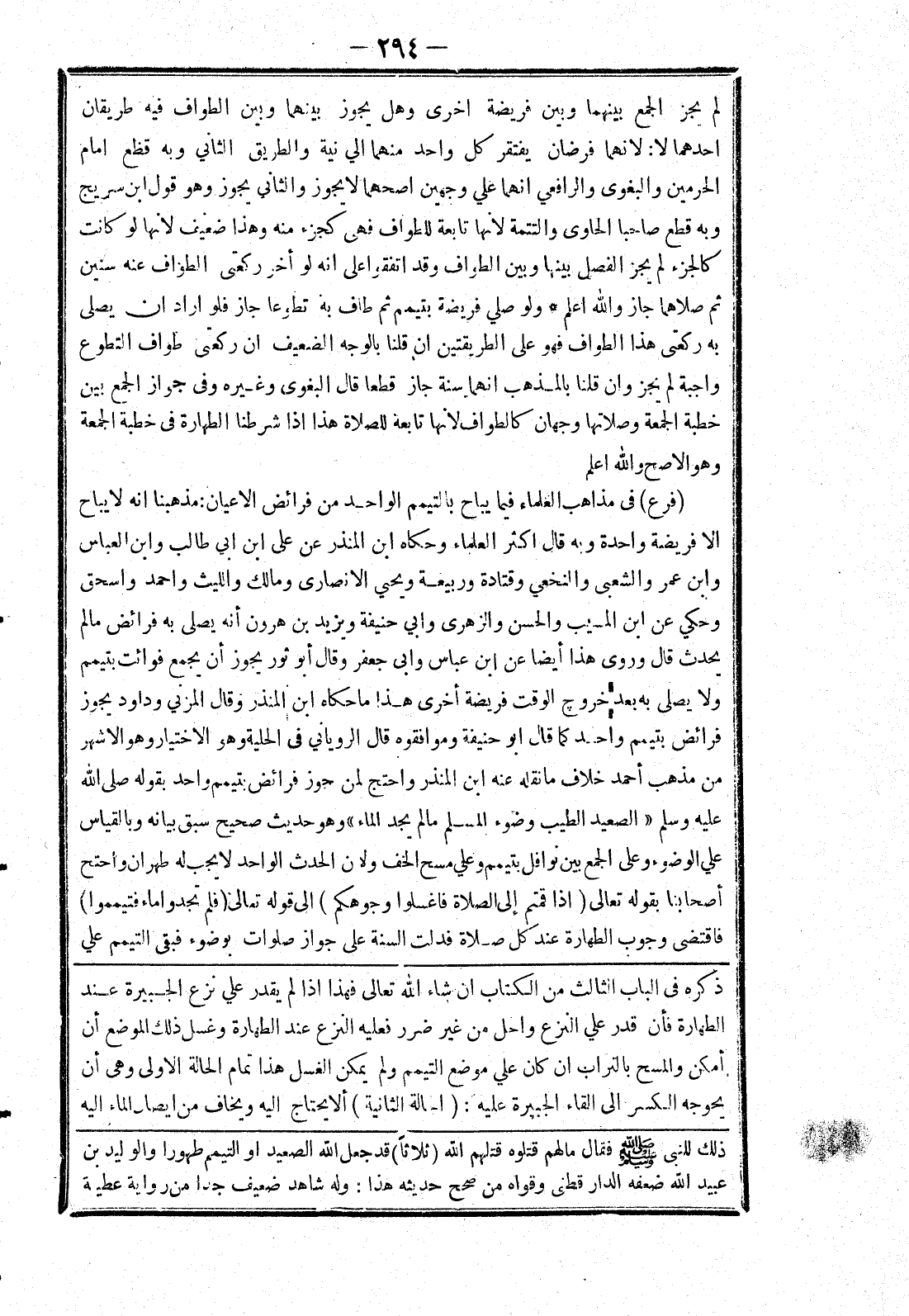 [ذكره في الباب الثالث من الكتاب ان شاء الله تعالى فهذا إذا لم يقدر علي نزع الجبيرة عند الطهارة فأن قدر علي النزع واحل من غير ضرر فعليه النزع عند الطهارة وغسل ذلك الموضع أن أمكن والمسح بالتراب ان كان علي موضع التيمم ولم يمكن الغسل هذا تمام الحالة الاولى وهى أن يحوجه الكسر إلى القاء الجبيرة عليه: (المسالة الثانية) ألا يحتاج إليه ويخاف من ايصال الماء إليه]