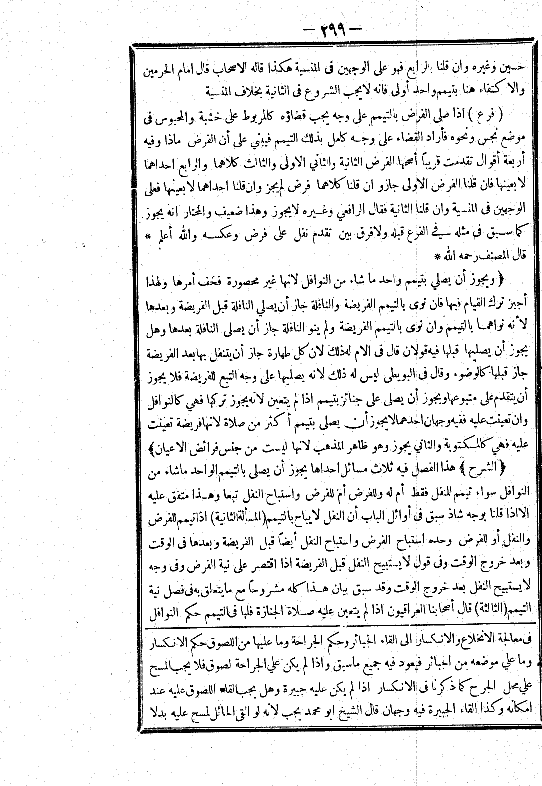 [في معالجة الانخلاع والانكسار إلى القاء الجبائر وحكم الجراحة وما عليها من اللصوق حكم الانكسار وما علي موضعه من الجبائر فيعود فيه جميع ما سبق وإذا لم يكن علي الجراحة لصوق فلا يجب المسح علي محل الجرح كما ذكرنا في الانكسار إذا لم يكن عليه جبيرة وهل يجب القاء اللصوق عليه عند امكانه وكذا القاء الجبيرة فيه وجهان قال الشيخ أبو محمد يجب لانه لو القى الحائل لمسح عليه بدلا]