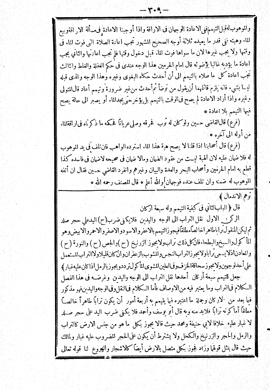 [توهم الاندمال] قال [الباب الثاني في كيفية التيمم وله سبعة اركان
