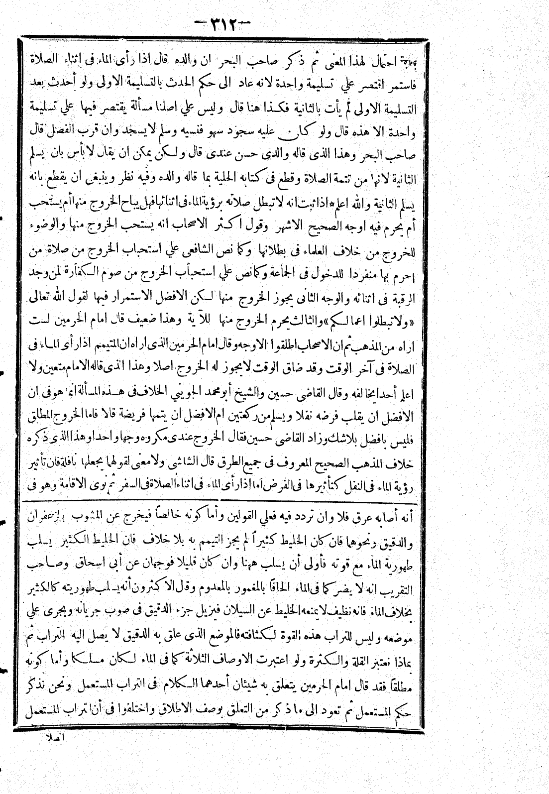 والدقيق ونحوهما فان كان الخليط كثيرا لم يجز التيمم به بلا خلاف فان الخليط الكثير يسلب طهورية الماء مع قوته فأولى أن يسلب ههنا وان كان قليلا فوجهان عن أبى اسحاق وصاحب التقريب انه لا يضر كما في الماء الحافا بالمغمور بالمعدوم وقال الاكثرون أنه يسلب طهوريته كالكثير بخلاف الماء فانه نظيف لا يمنعه الخليط عن السيلان فيزيل جزء الدقيق في صوب جريانه ويجرى علي موضعه وليس للتراب هذه القوة لكثافته فالموضع الذى علق به الدقيق لا يصل إليه التراب ثم بماذا تعتبر القلة والكثرة ولو اعتبرت الاوصاف الثلاثة كما في الماء لكان مسلكا وأما كونه مطلقا فقد قال امام الحرمين يتعلق به شيئان أحدهما الكلام في التراب المستعمل ونحن نذكر حكم المستعمل ثم تعود إلى ما ذكر من التعلق بوصف الاطلاق واختلفوا في أن التراب المستعمل]