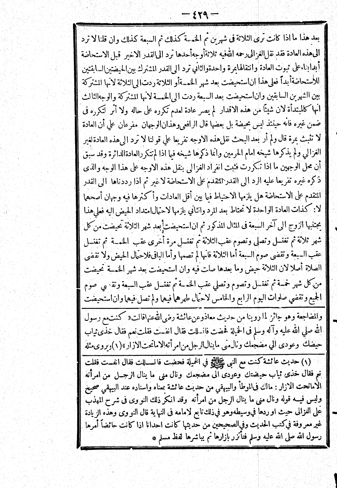 [والمضاجعة وهو جائز لما روينا من حديث معاذ وعن عائشة رضى الله عنها قالت (كنت مع رسول الله صلي الله عليه وسلم في الخميلة فحضت فانسللت فقال انفست فقلت نعم فقال خذى ثياب حيضك وعودي الي مضجعك ونال منى ما ينال الرجل من امرأته الا ما تحت الازار) ويروى مثله]