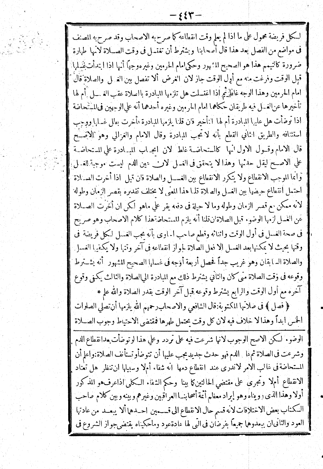 الانقطاع أم لا وتجرى على مقتضي الحالتين كما بينا وحكم الشفاء الكلى إذا عرف هو المذكور أولا وهذا الذى رويناه وهو إيراد معظم أئمة أصحابنا العراقيين وغيرهم وبينه وبين كلام صاحب الكتاب بعض الاختلافات لانه قسم حال الانقطاع إلى قسمين احدهما ألا يبعد من عادتها العود والثانى ان يبعدوهما جميعا بفرضان في التى لها عادة عود وما حكيناه يقتضى جواز الشروع في]