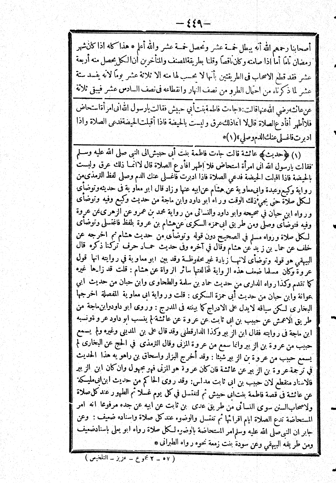[عن عائشة رضي الله عنها قالت: (جاءت فاطمة بنت أبي حبيش فقالت يا رسول الله انى امرأة استحاض فلا أطهر أفأدع الصلاة قال لا انما ذلك عرق وليست بالحيضة فإذا أقبلت الحيضة فدعى الصلاة وإذا ادبرت فاغسلي عنك الدم وصلي) *]
