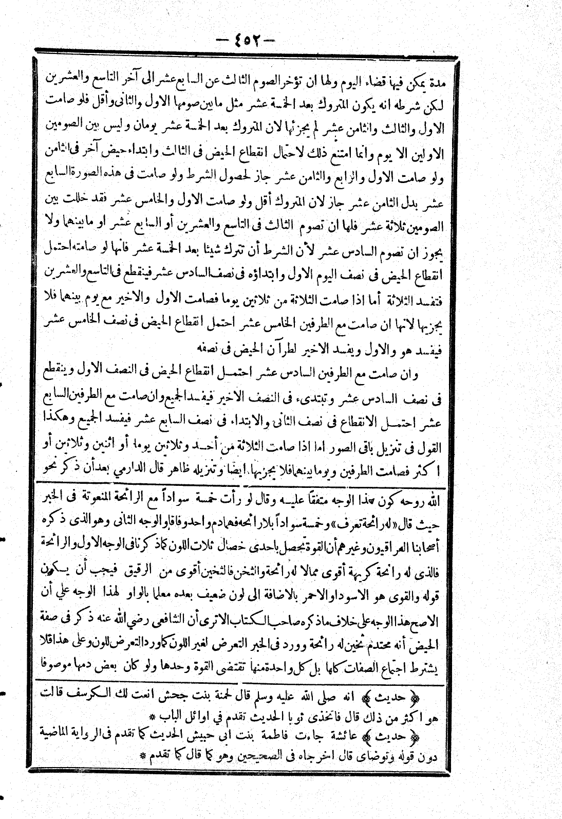 [الله روحه كون هذا الوجه متفقا عليه وقال لو رأت خمسة سوادا مع الرائحة المنعوتة في الخبر حيث قال (له رائحة تعرف) وخمسة سوادا بلا رائحه فهما دم واحد وفاقا والوجه الثاني وهو الذى ذكره أصحابنا العراقيون وغيرهم أن القوة تحصل باحدى خصال ثلاث اللون كما ذكرنا في الوجه الاول والرائحة فالذي له راحة كريهة أقوى ممالا لهراحسة والثخن فالثخين أقوى من الرقين فيجب أن يكون قوله والقوى هو الاسودا والاحمر بالاضافة إلى لون ضعيف بعده معلما بالواو لهذا الوجه علي أن الاصح هذا الوجه على خلاف ما ذكره صاحب الكتاب الا ترى يأن الشافعي رضي الله عنه ذكر في صفة الحيض أنه محتدم ثخين له رائحة وورد في الخبر التعرض لغير اللون كما ورد التعرض للون وعلى هذا قلا يشترط اجتماع الصفات كلها بل كل واحدة منها تقتضي القوة وحدها ولو كان بعض دمها موصوفا]