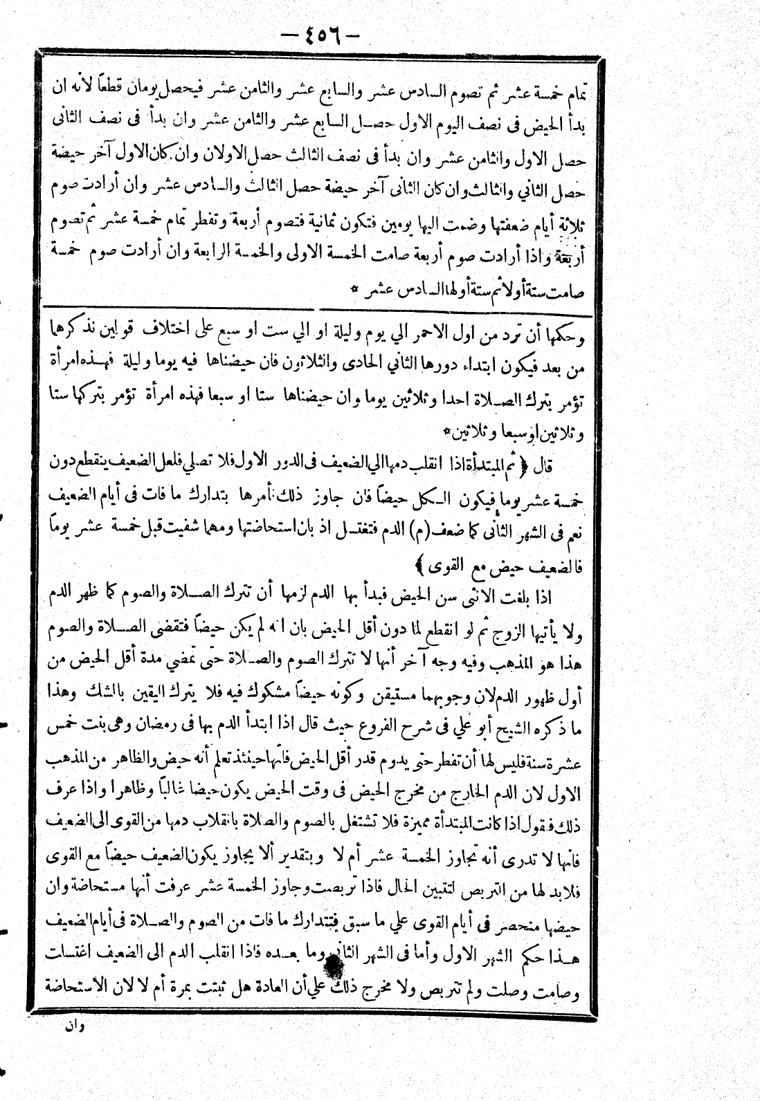 [وحكمها أن ترد من اول الاحمر الي يوم وليلة أو الي ست أو سبع على اختلاف قولين نذكرهما من بعد فيكون ابتداء دورها الثاني الحادى والثلاثون فان حيضناها فيه يوما وليلة فهذه امرأة تؤمر بترك الصلاة احدا وثلاثين يوما وان حيضناها ستا أو سبعا فهذه امرأة تؤمر بتركها ستا وثلاثين أو سبعا وثلاثين * قال [ثم المبتدأة إذا انقلب دمها الي الضعيف في الدور الاول فلا تصلي فلعل الضعيف ينقطع دون خمسة عشر يوما فيكون الكل حيضا فان جاوز ذلك نأمرها بتدارك ما فات في أيام الضعيف