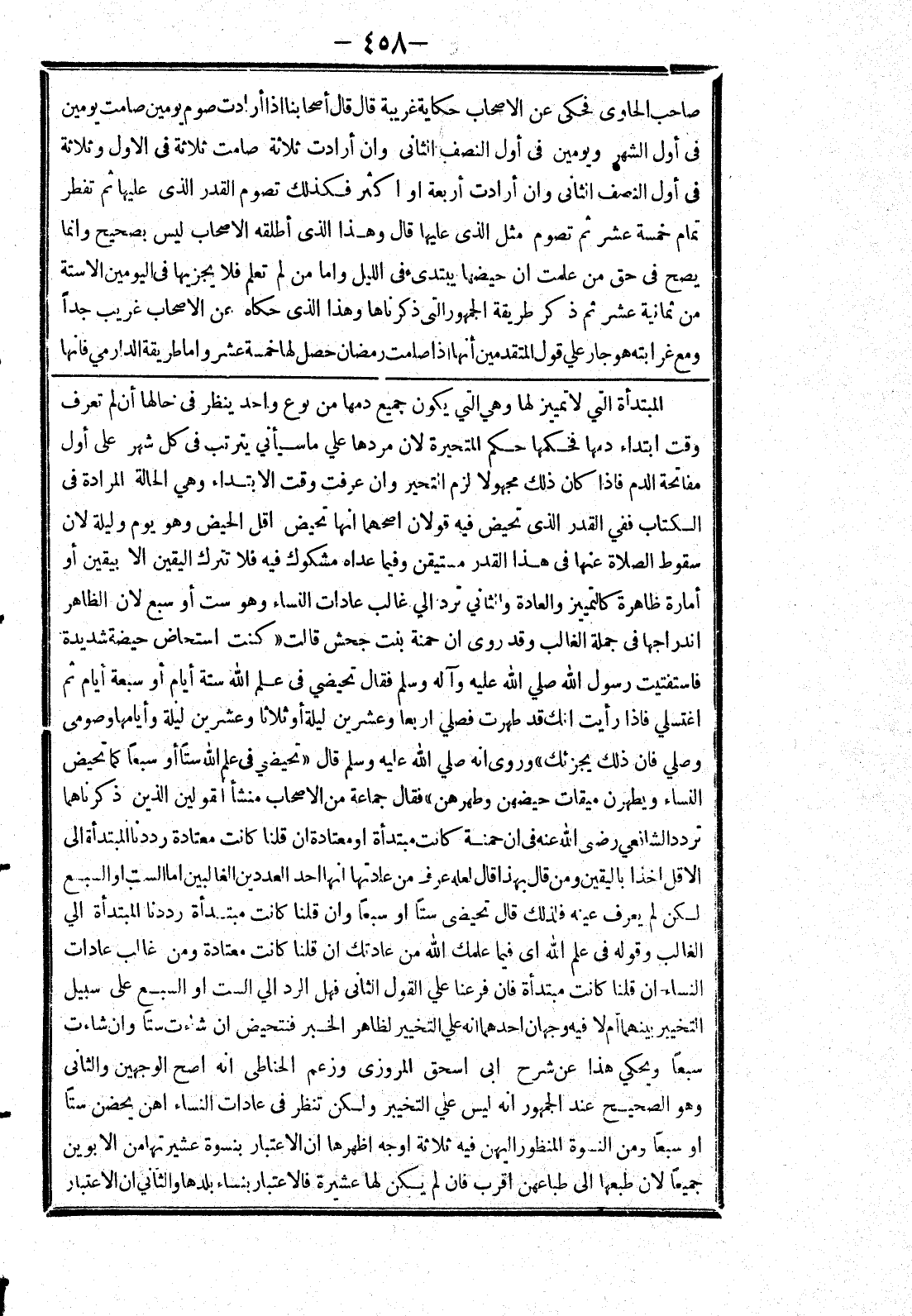 فاستفتيت رسول الله صلى الله عليه وسلم فقال تحيضي في علم الله ستة أيام أو سبعة أيام ثم اغتسلي فإذا رأيت انك قد طهرت فصلي اربعا وعشرين ليلة أو ثلاثا وعشرين ليلة وأيامها وصومي وصلي فان ذلك يجزئك) وروى أنه صلي الله عليه وسلم قال (تحيضي في علم الله ستا أو سبعا كما تحيض النساء ويطهرن ميقات حيضهن وطهرهن) فقال جماعة من الاصحاب منشأ القولين الذين ذكرناهما تردد الشافعي رضى الله عنه في ان حمنة كانت مبتدأة أو معتادة ان قلنا كانت معتادة رددنا المبتدأة إلى الاقل اخذا باليقين ومن قال بهذا قال لعله عرف من عادتها انها احد العددين الغالبين اما الست أو السبع لكن لم يعرف عينه فلذلك قال تحيضي ستا أو سبعا وان قلنا كانت مبتدأة رددنا المبتدأة الي الغالب وقوله في علم الله أي فيما علمك الله من عادتك ان قلنا كانت معتادة ومن غالب عادات النساء ان قلنا كانت مبتدأة فان فرعنا علي القول الثاني فهل الرد الي الست أو السبع على سبيل التخيير بينهما أم لا فيه وجهان احدهما انه علي التخيير لظاهر الخبر فتحيض ان شاءت ستا وان شاءت سبعا ويحكي هذا عن شرح ابى اسحق المروزى وزعم الحناطى انه اصح الوجهين والثانى وهو الصحيح عند الجمهور انه ليس علي التخيير ولكن تنظر في عادات النساء اهن يحضن ستا أو سبعا ومن النسوة المنظور اليهن فيه ثلاثة اوجه اظهرها ان الاعتبار بنسوة عشيرتها من الابوين جميعا لان طبعها إلى طباعهن اقرب فان لم يكن لها عشيرة فالاعتبار بنساء بلدها والثاني ان الاعتبار]
