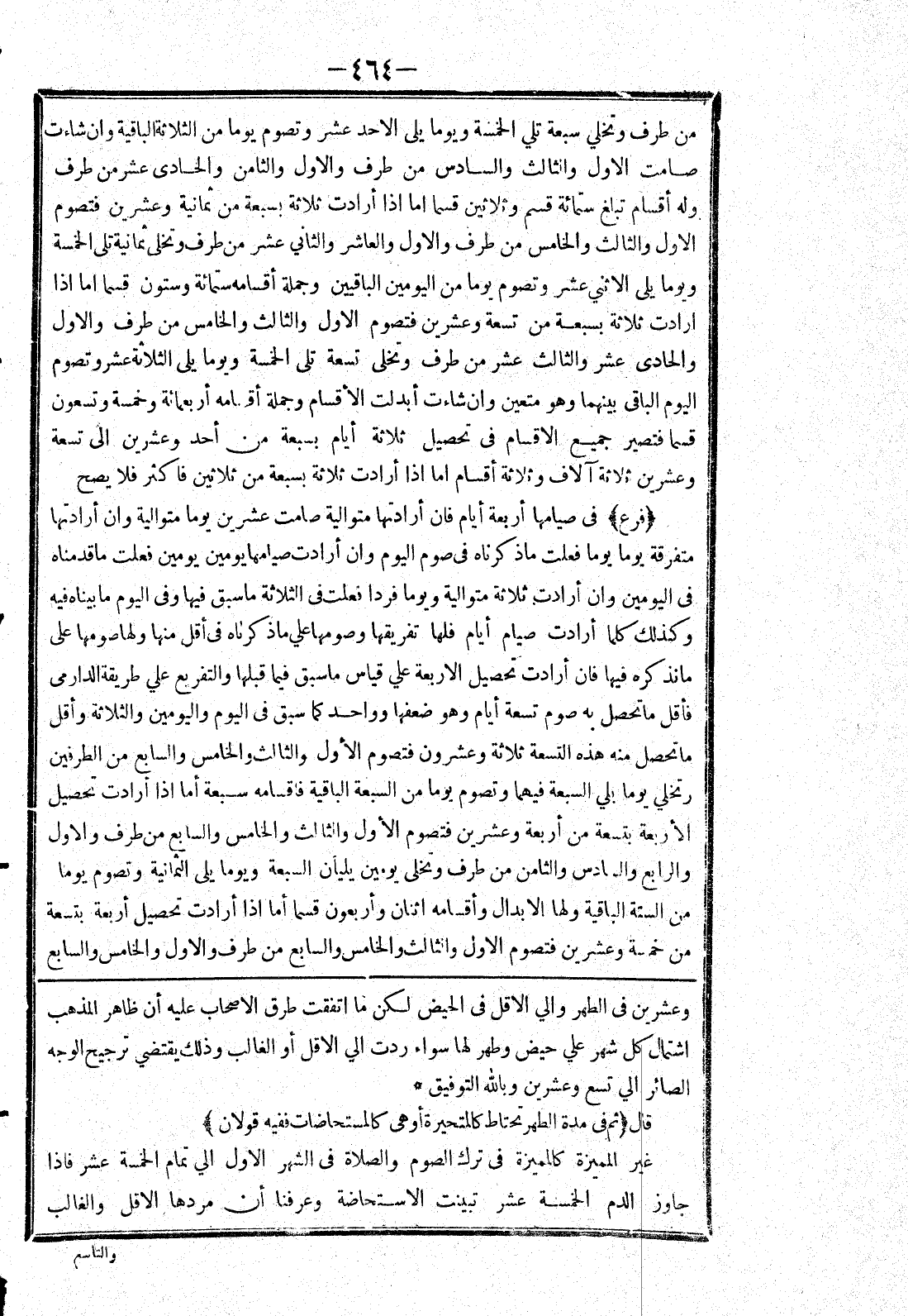 [وعشرين في الطهر والي الاقل في الحيض لكن ما اتفقت طرق الاصحاب عليه أن ظاهر المذهب اشتمال كل شهر علي حيض وطهر لها سواء ردت الي الاقل أو الغالب وذلك يقتضي ترجيح الوجه الصائر الي تسع وعشرين وبالله التوفيق *