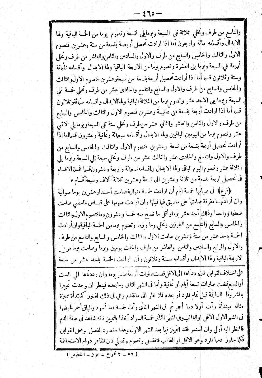 [على اختلاف القولين فان رددناها إلى الاقل قضت صلوات أربعة عشر يوما وان رددناها الي الست أو السبع قضت صلوات تسعة أيام أو ثمانية وأما في الشهر الثاني وما بعده فينظر ان وجدت تمييزا بالشروط السابقة قبل تمام المرد أو بعده فلا نظر إلى ما تقدم وهي في ذلك الدور كمبتدأة مميزة مثاله مبتدأة رأت أولا دما أحمر ثم في الشهر الثاني رأت خمسة دما أسود والباقى أحمر فحيضها في الشهر الاول الاقل أو الغالب وفى الشهر الثاني خمسة السواد أخذا بالتمييز فانه شاهد في صفة الدم فالنظر إليه أولي وان استمر فقد التمييز فيما بعد الشهر الاول وهذا مقصود الفصل ومحل القولين فكما جاوز دمها المرد وهو الاقل أو الغالب فتغتسل وتصوم وتصلي لان الظاهر دوام الاستحاضة]